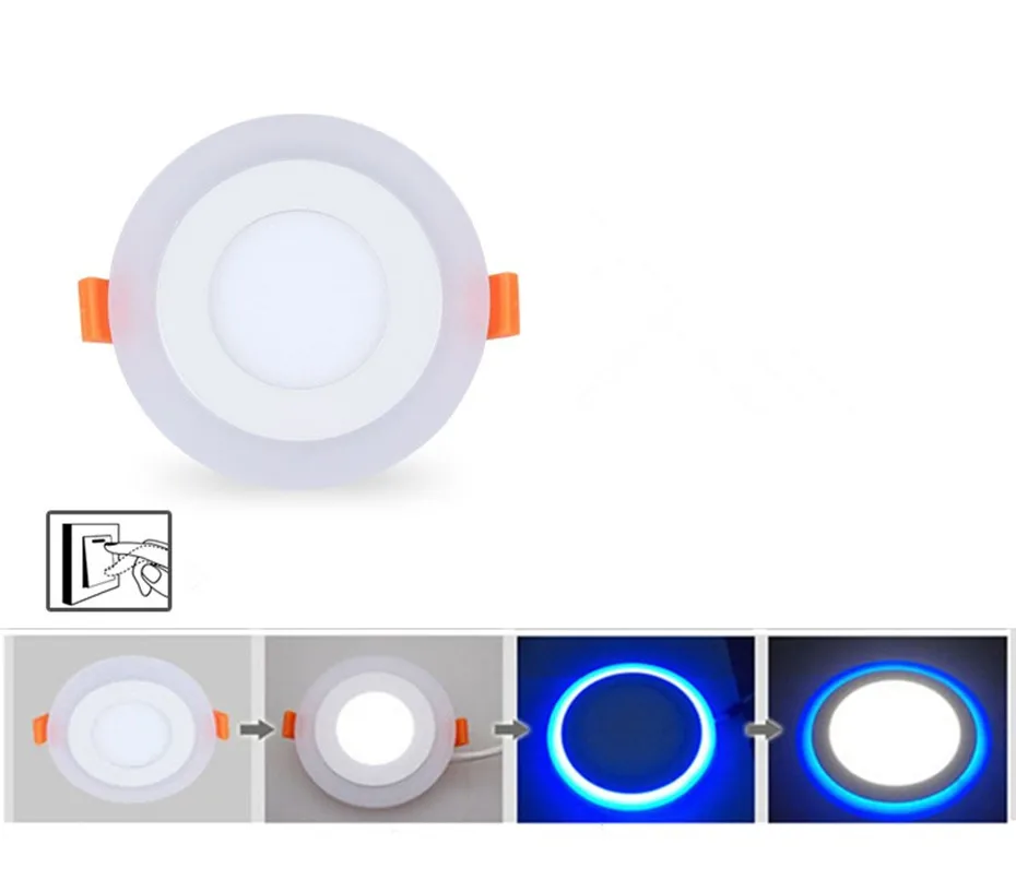 Три модели управления:Переключатель 1: светильник только синего цветаПереключатель 2: светильник белого цвета только в центре;Переключатель 3: светильник синего и белого цвета