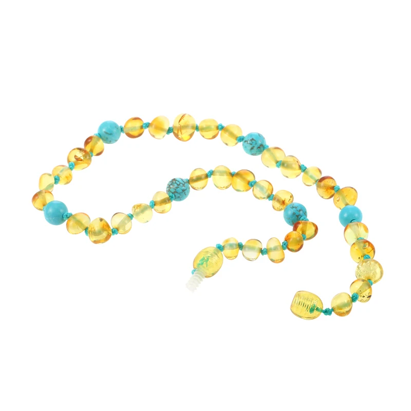 Натуральный анальгетик, янтарь поможет успокоить ребенка, не обращаясь к лекарственным средствам. Янтарь-это окаменелая смола, а не камень. Поэтому он теплый на ощупь, а также очень удобный и светильник. Ношение Прибалтики ожерелья из янтаря на коже может иметь успокаивающий и успокаивающий эффект на прорезывание зубов младенцев и малышей. Когда янтарь носится на коже, тепло кожи выделяет небольшое количество целебных масел из янтаря, которые затем впитываются через кожу в кровоток. Янтарный противовоспалительным и лечебных свойств также признаны аллопатической медицины. В Австрии, Швейцарии и германии вы найдете янтарные ожерелья для прорезывания зубов, продающиеся в местных аптеках.