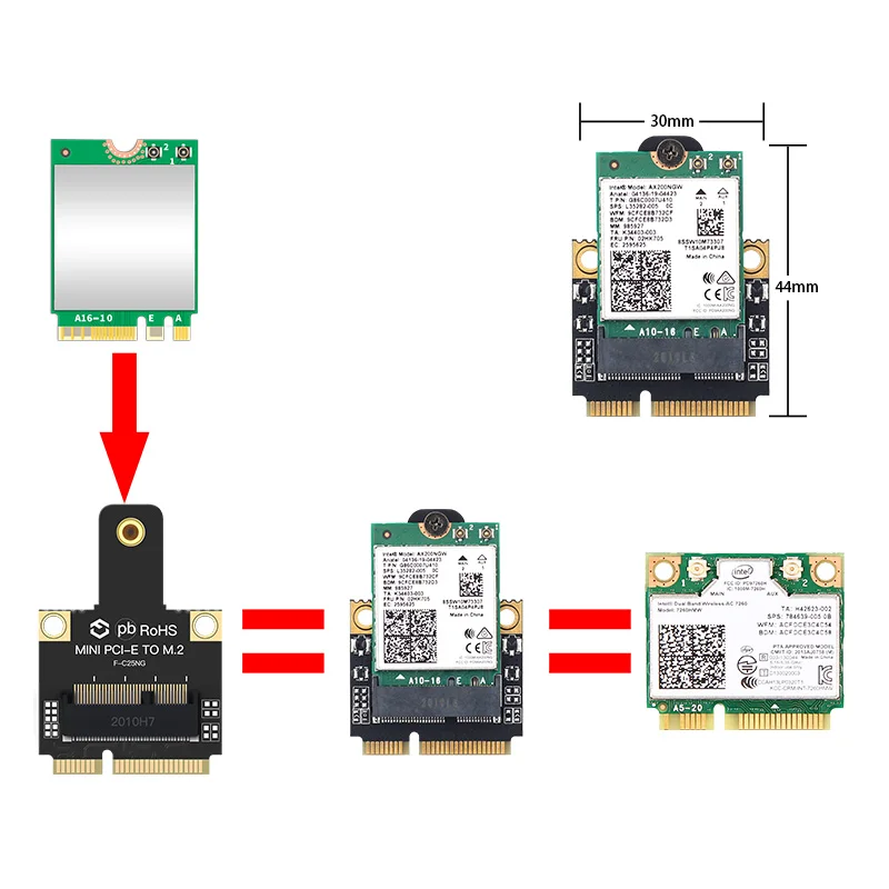Адаптер M.2 NGFFMini PCI-E (PCIe + USB) для M.2 Wifi Bluetooth плата Wireless Wlan Card Intel AX200 9260 8265 8260 для ноутбука