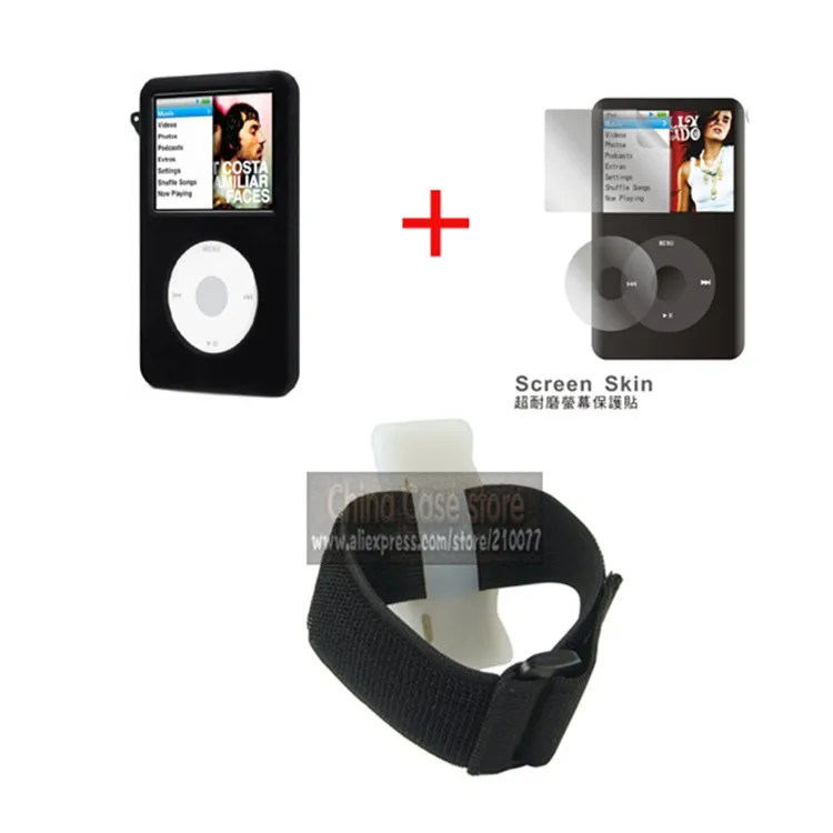 Черный спортивный ремешок + силиконовый чехол для iPod Classic 80G120Gnew 160G с защитной пленкой