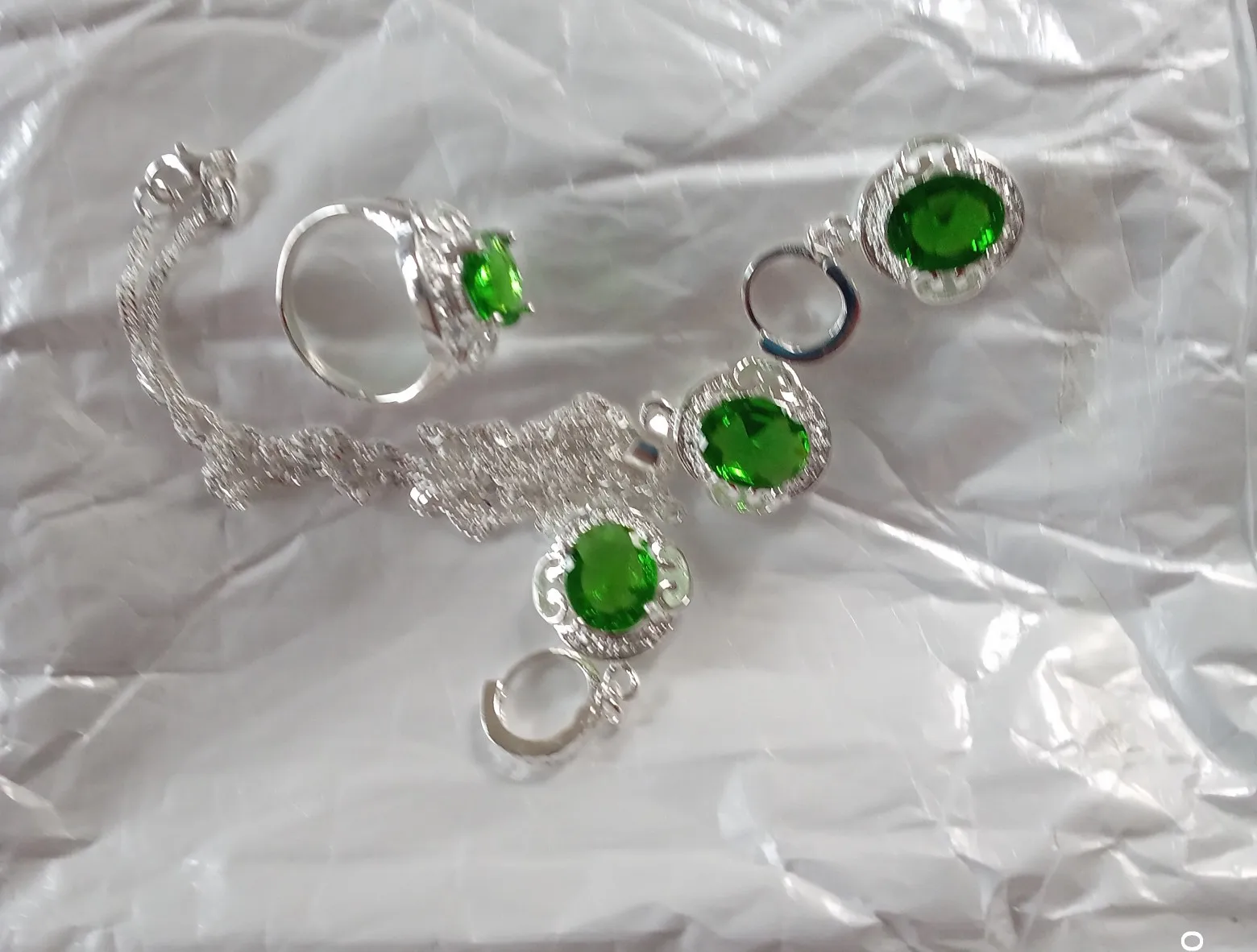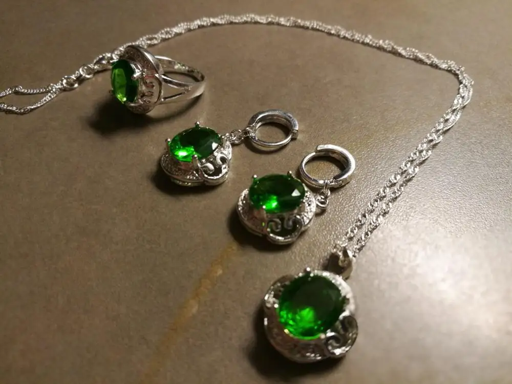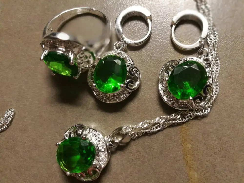 Комплект ювелирных изделий из серебра 925 пробы, с кубическим цирконием зеленого цвета