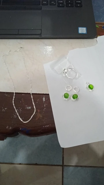 Милый комплект. Цвет камня красивого, ярко зеленого оттенка. Рекомендую продавца.