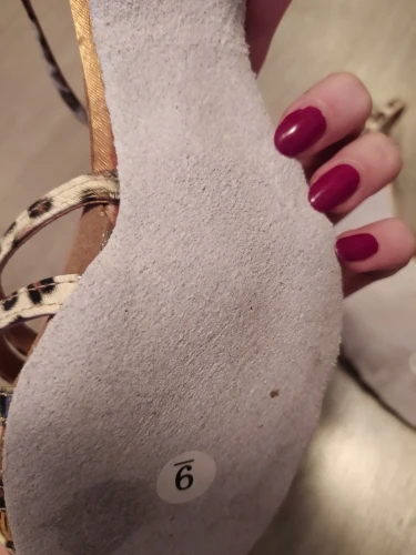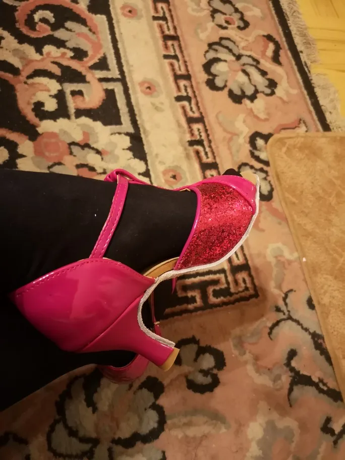 Доставка всего 10 дней! Это прям супер. Пришли с небольшими потёртостями, если не вглядываться, то и незаметно. На ремне очень мало дырок, придётся самостоятельно идти в ремонт и просить сделать дополнительные дырочки. Сама форма на широкую ножку, у меня спокойно влез указательный палец... Но думаю подушечки под пальцы чуть приподнимут ногу и будет лучше. Высота каблука соответствует. Так же как оказалось пытка, глянцевый материал липнет друг к другу лучше чуть снять верхний слой пилочкой например, попробую это сделать. Колодка вроде хорошая, после пары часов танцевания будет понятно. Продавец отвечает быстро, что тоже плюс!