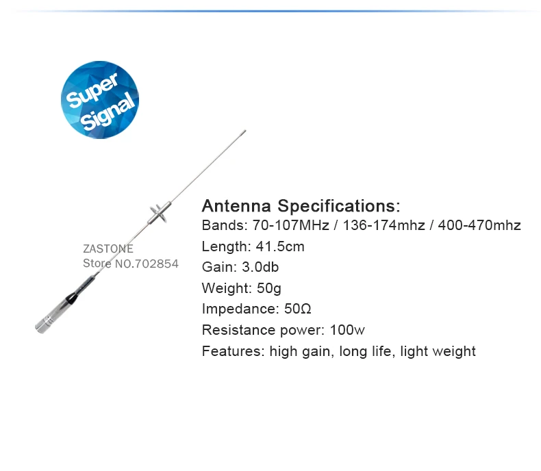 Модель: NL-770SАвтомобильная двухдиапазонная антенна для сцены, универсальный УФ-сегмент, высокопроизводительная антеннаЧастота: 144/430Коэффициент усиления: 2,15/3 дБМощность: 150 ВтСопротивление: 50 ОмОбщая длина: 415 ммВес: 175 г