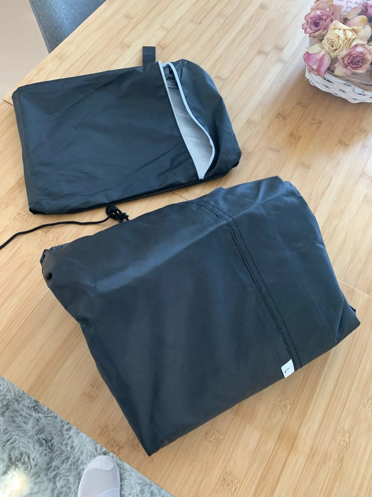 Заказ пришел быстро, за 2 недели. Почитав, что чехлы большемерят, на размер барбекю 150 см взяла чехол размером 145 и непрогадала! Сел идеально - ни больше, ни меньше, и по длине хорошо. Ткань и правда тоньше чем на родном чехле, шуршит как бумага.