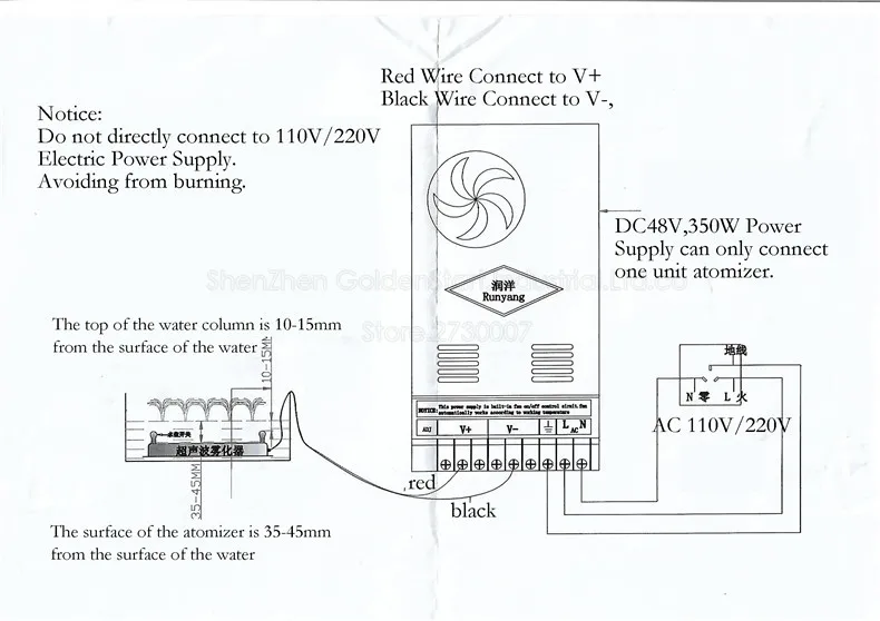 1. Атомайзер не имеет прямого доступа к источнику питания 110 В или 220 В, необходимо переключать источник питания или адаптер на 48 В.Если у вас нет соответствующего переключателя питания или адаптера, если у вас нет соответствующего переключателя питания или адаптера, пожалуйста, приобретите источник питания.2. Переключение источника питания не является водонепроницаемым, не может погружаться в воду или туман.
