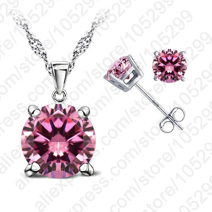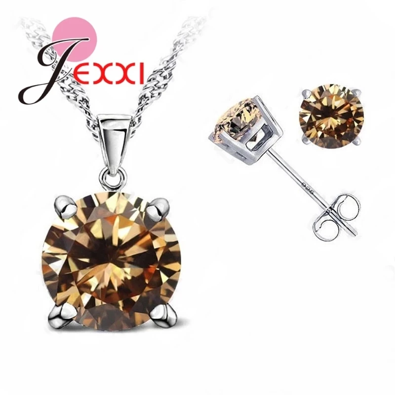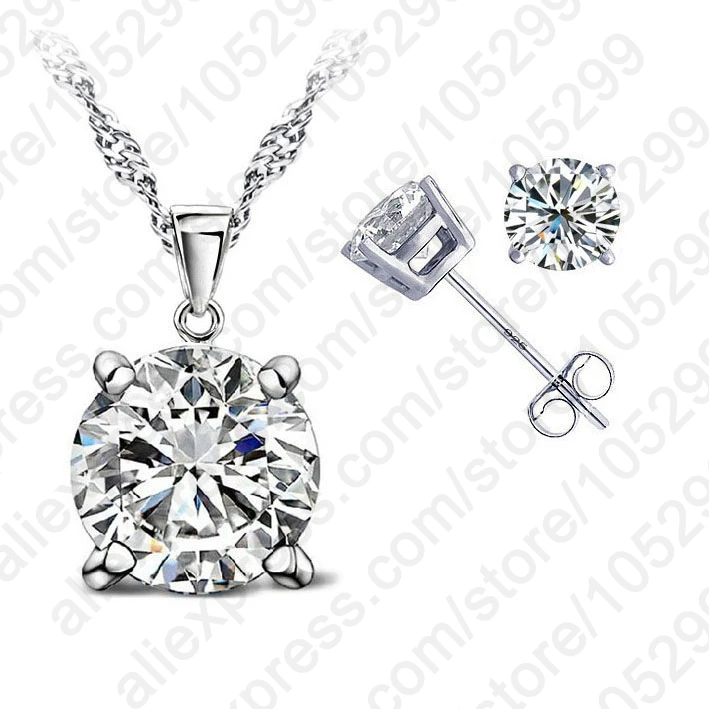Современные ювелирные украшения с 4 когтями и фианитом, ювелирные наборы из серебра 925 пробы хорошего качества, серьги-гвоздики, подвеска, ожерелье