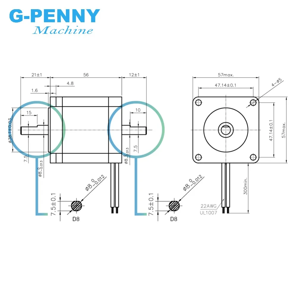 Двухвальный шаговый двигатель с ЧПУ 57x56 NEMA 23, D = 8 мм, 3a, 1,26 нм, 180 унций