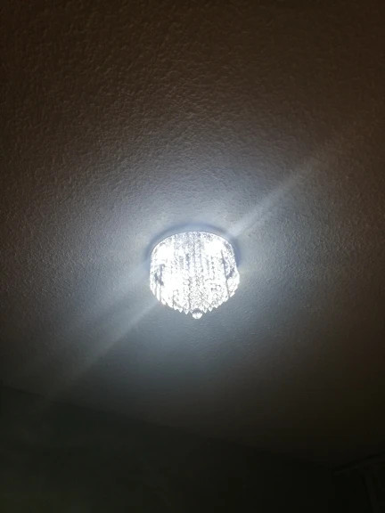 внешний вид люстры устроил. заказывала в ванную комнату теплый белый свет, но очень тускло даже для такого маленького помещения. лучше заказать холодный белый свет. три плафона со светодиодами, которые не заменить. люстра получается одноразовой, что очень огорчило, когда я решила сама заменить жёлтый свет на белый. своих денег одноразовая люстра не стоит. в комплекте не хватало кристаллов, но спасло наличие запасных. смогли ими компенсировать недостачу.