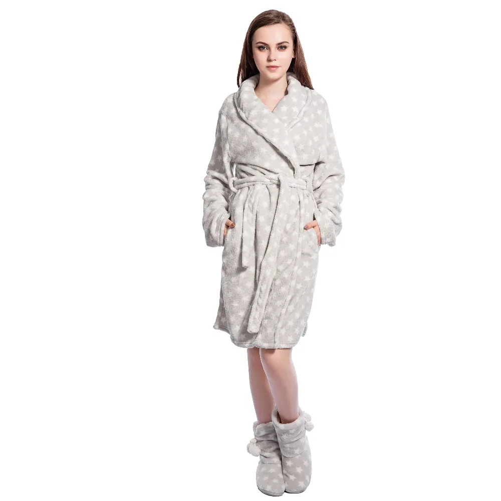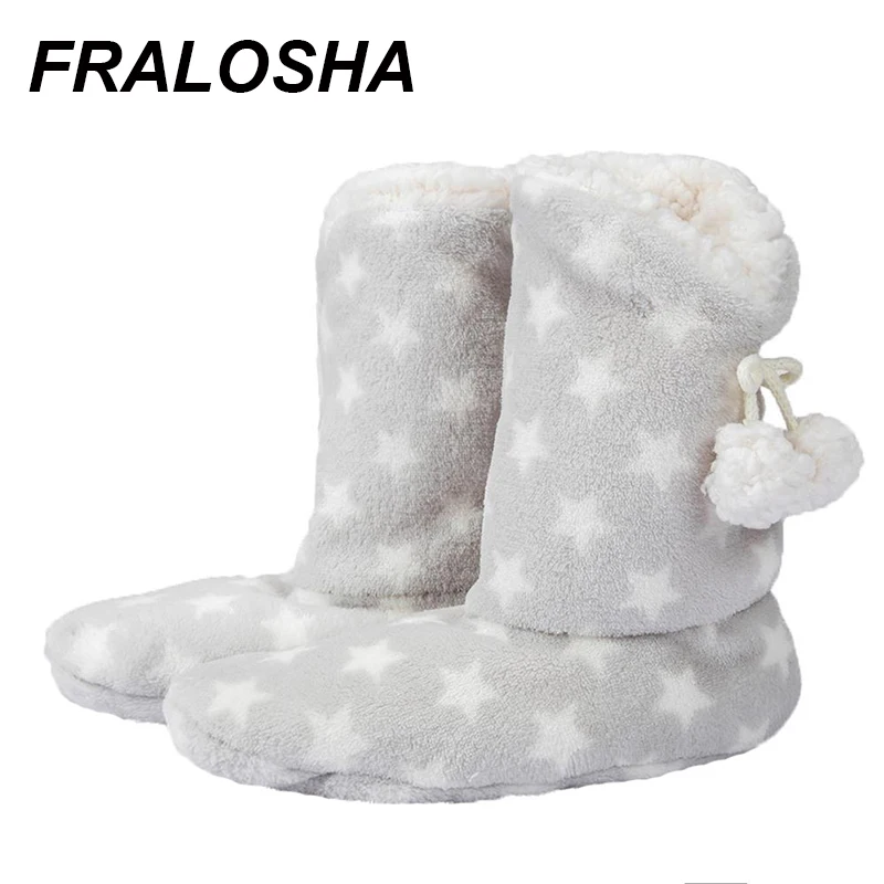 FRALOSHAбелые теплые домашние ботинки из толстого плюша со звездами; Обувь для пола; Нескользящая Мягкая домашняя обувь; Ботинки той же серии; Банный Халат