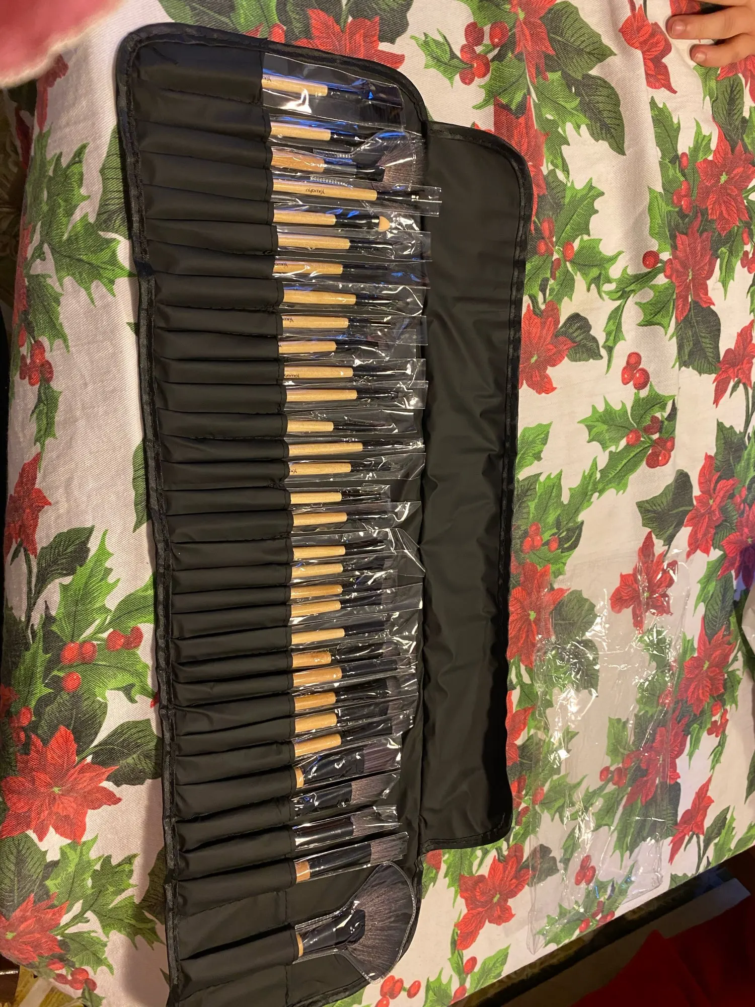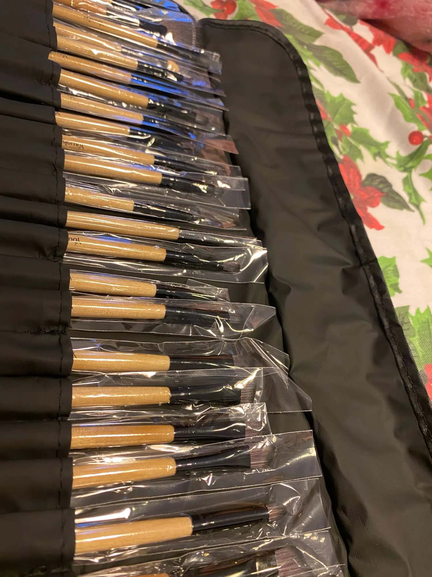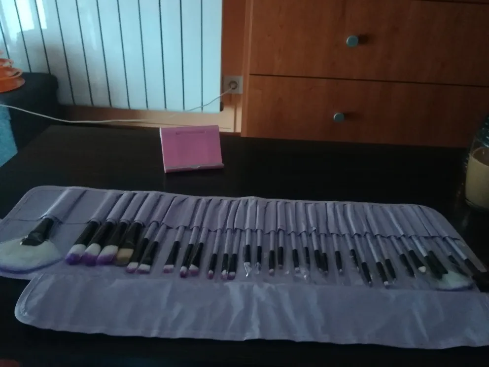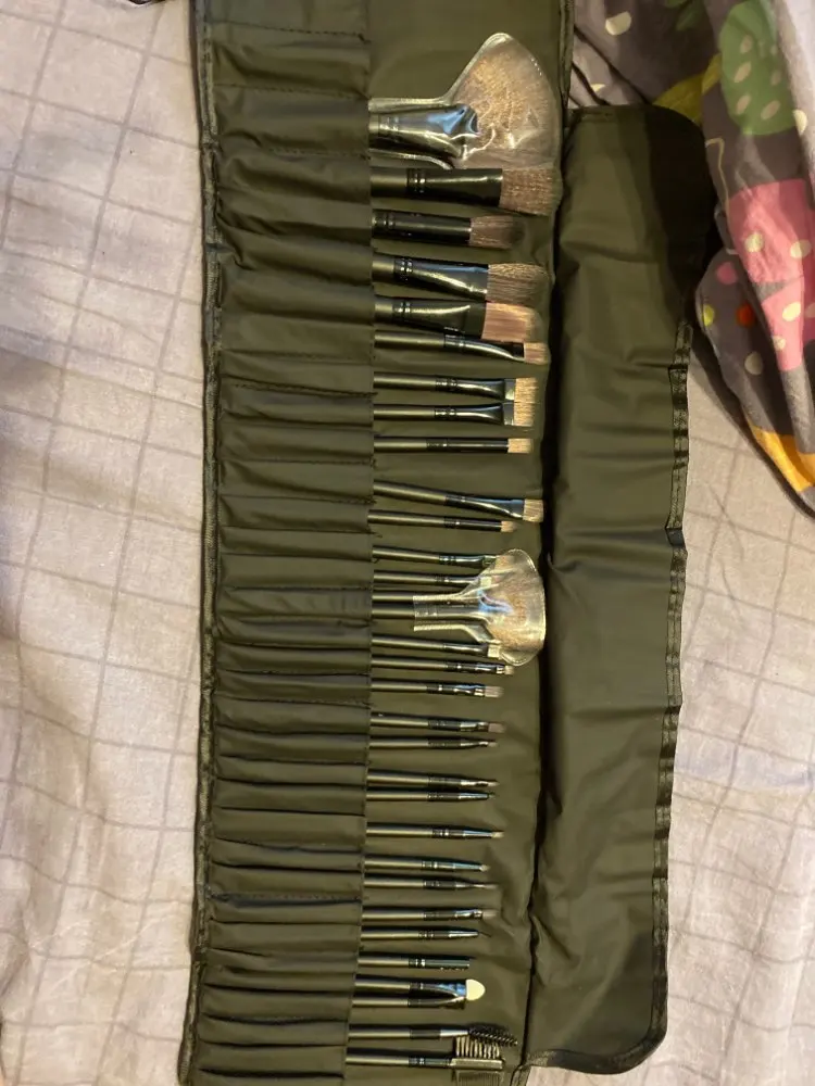 Все пришло очень быстро. Качество хорошее. Много кистей, но чехол сворачивается хорошо, комплект занимает мало места.