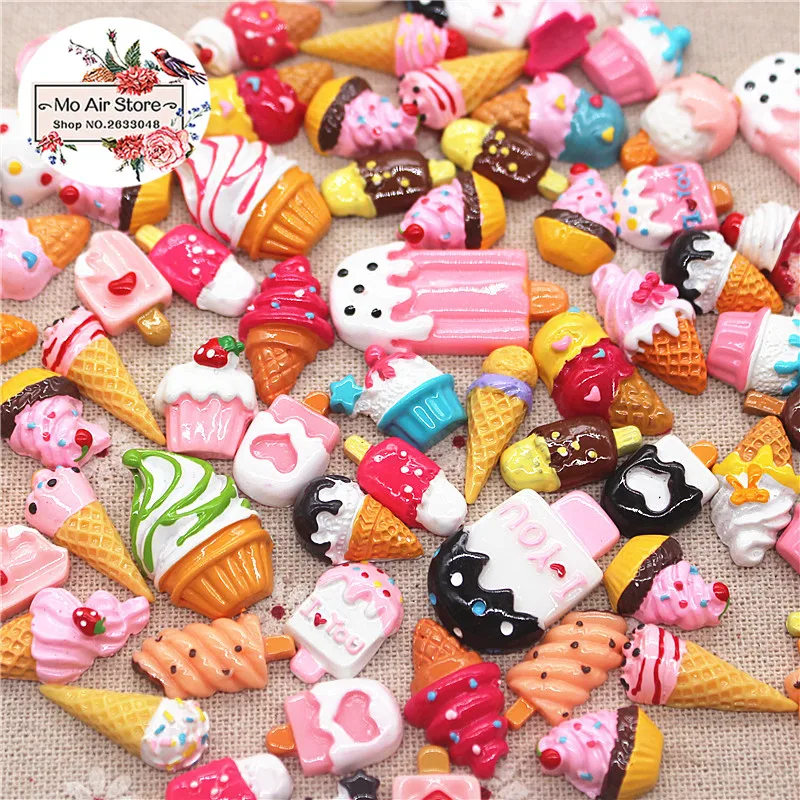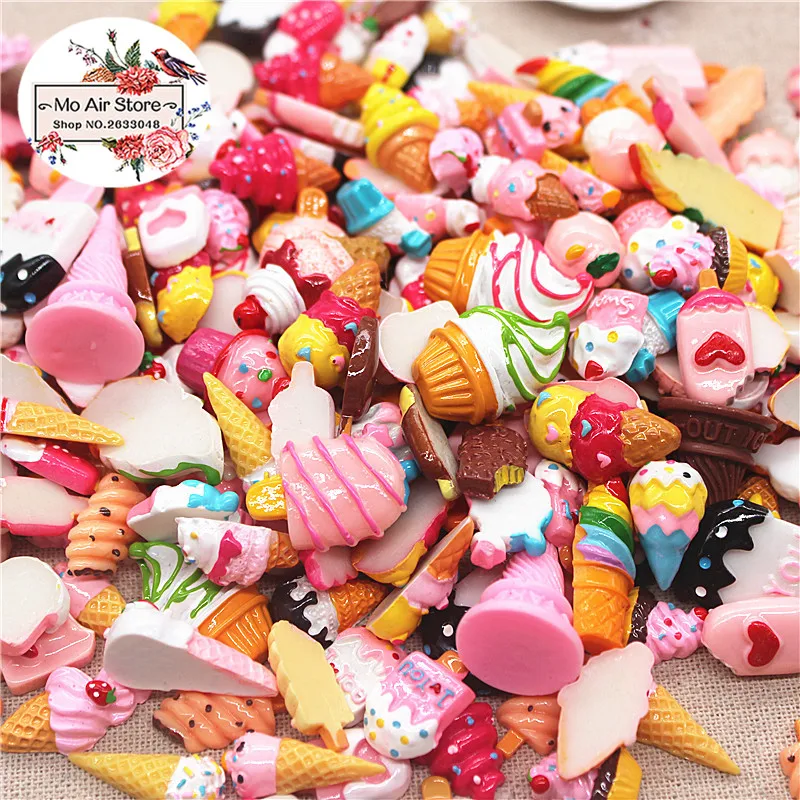 20 шт. смешанный дизайн Десерт Мороженое Кабошон из смолы с плоской задней стороной искусство поставка украшения Шарм Ремесло