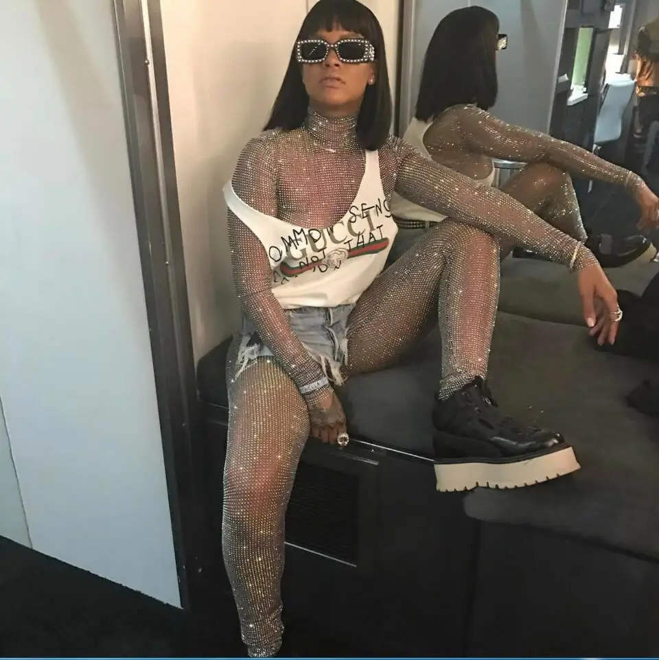 Блестящий Модный Блестящий Комбинезон разы с полными кристаллами наряд для выпускного вечера костюм с блестящими кристаллами