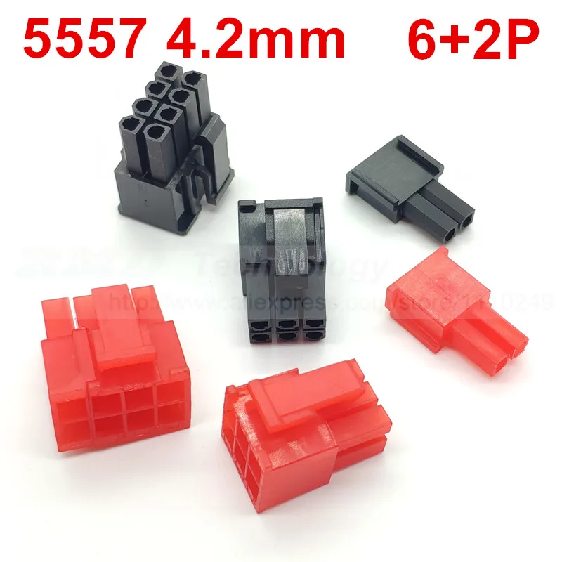 10 шт.лот 5557-R 5557 4,2 мм черныйкрасный 6 + 2PIN автомобильный разъем жгута проводов для ПКкомпьютерной видеокарты PCI-E Power