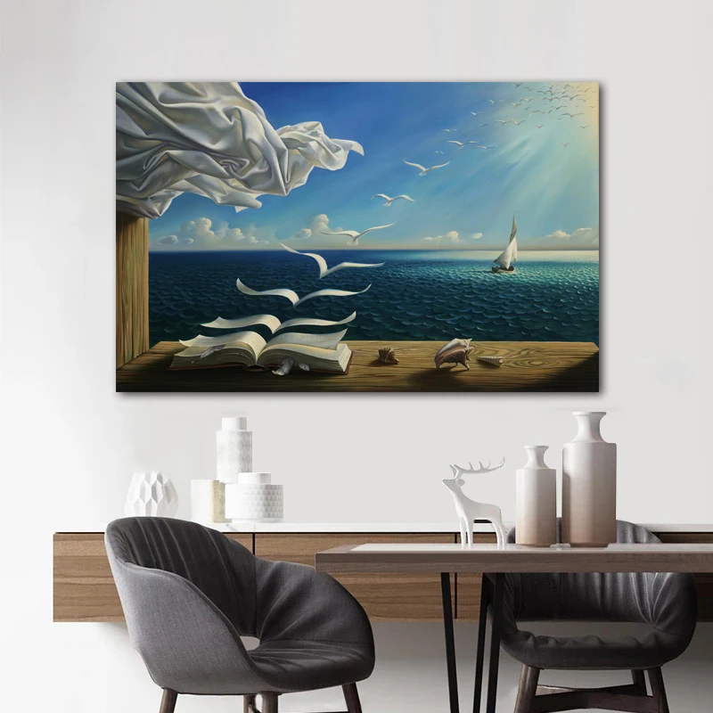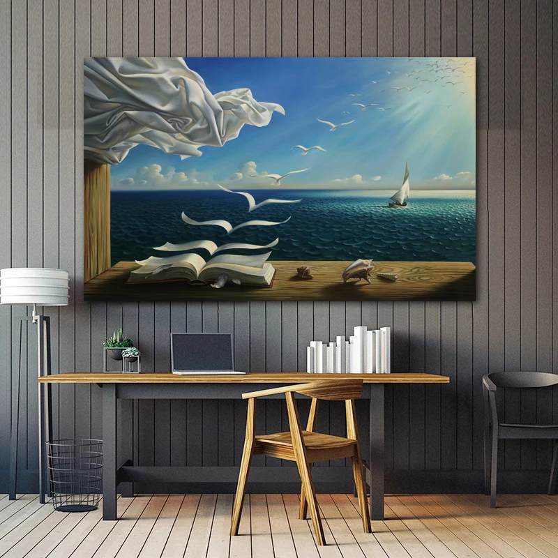 Salvador Dali холст, художественный постер, морская волна, книга, изображение парусника, холст, живопись, дневник открытия, Vladimir Kush Wall Art для гостиной, спальни, без рамки, современные картины для украшения, плакаты и принты