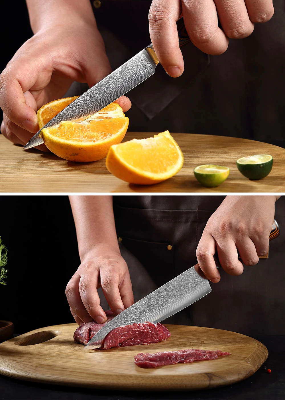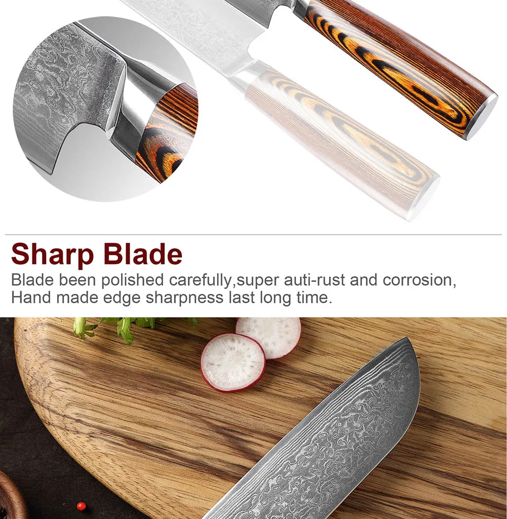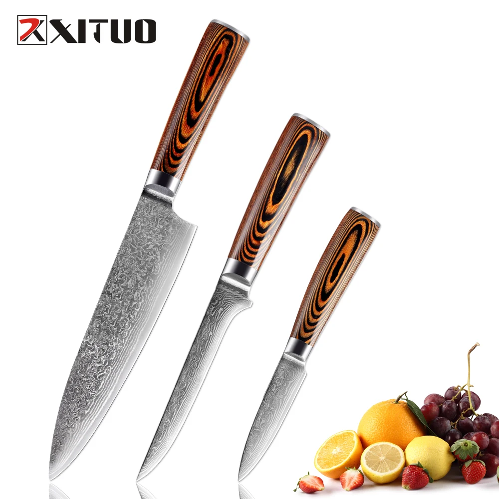 Набор кухонных ножей из дамасской стали, с деревянной ручкой, 3 шт.
