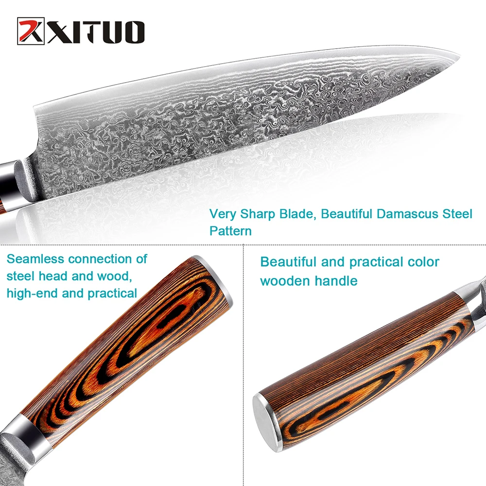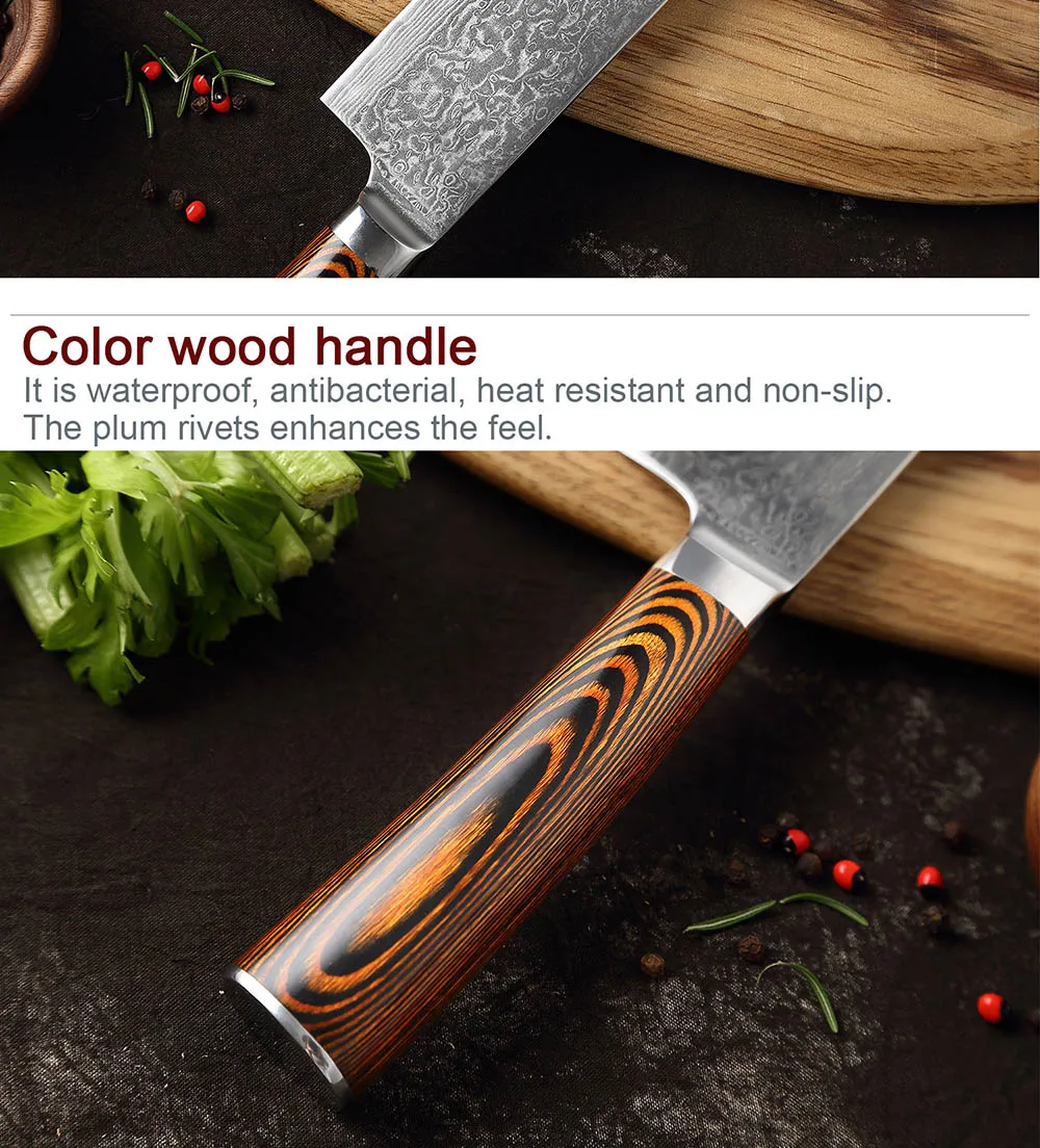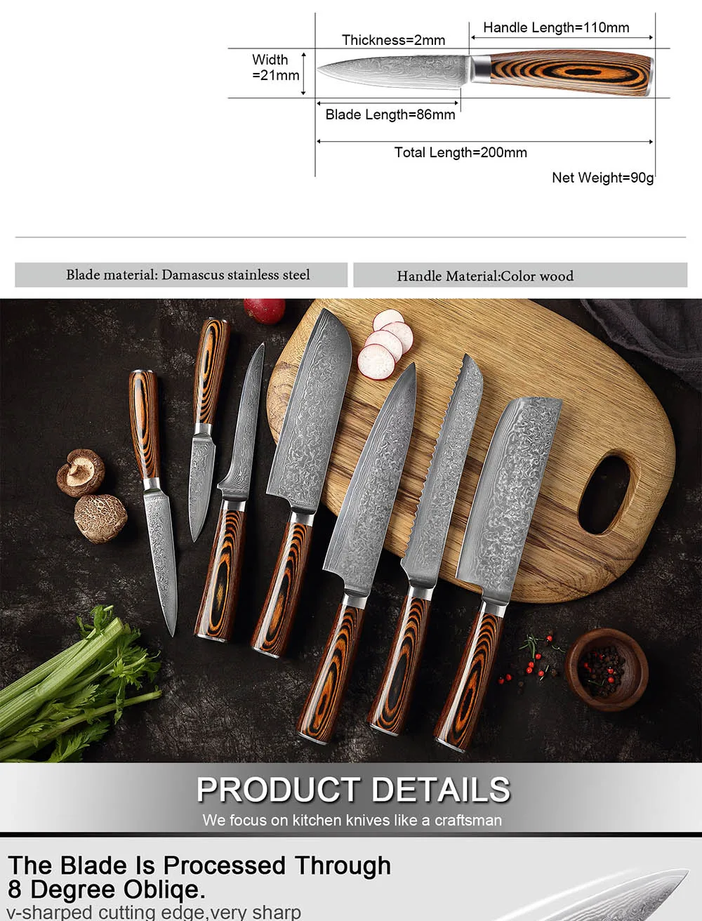 Набор кухонных ножей из дамасской стали, с деревянной ручкой, 3 шт.