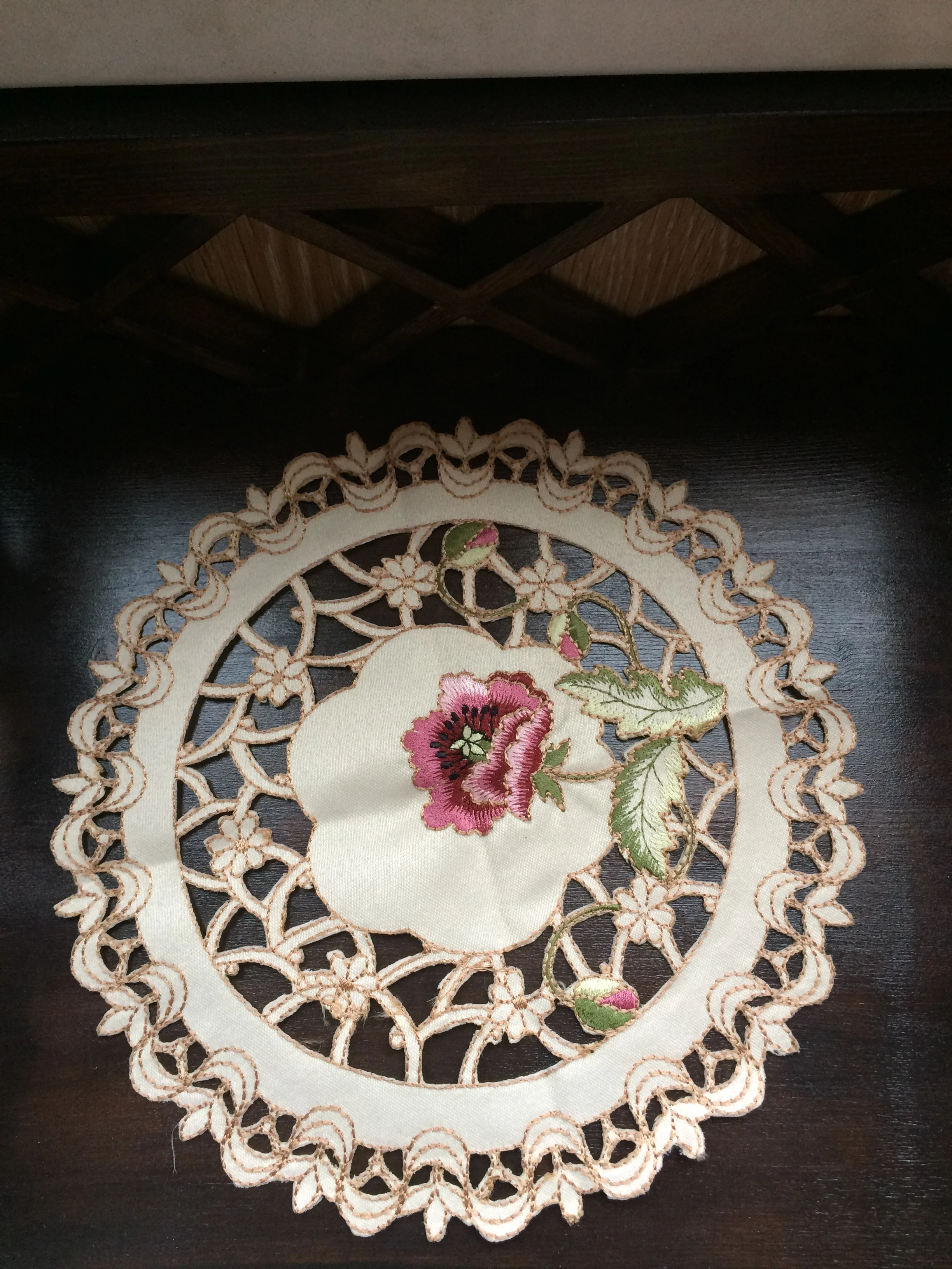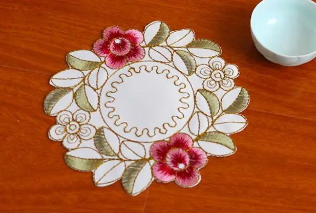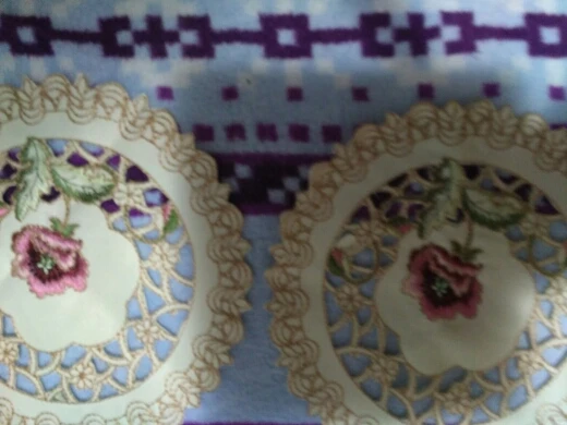 Красивая салфетка, вышивка качественная, нитки не торчат. Немного помялась. Маленькая, под кофейную чашечку