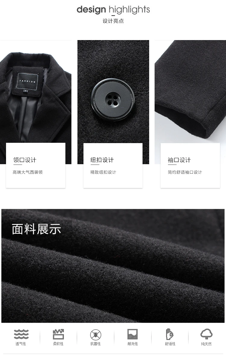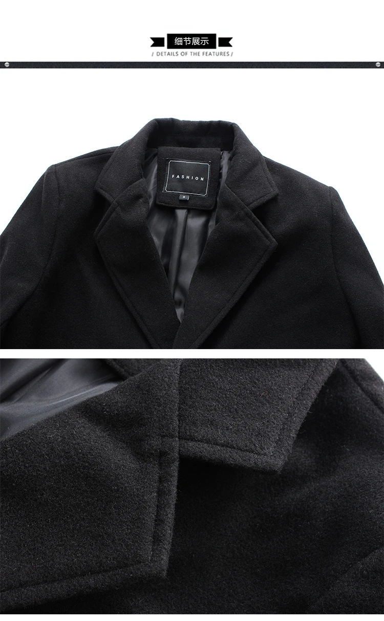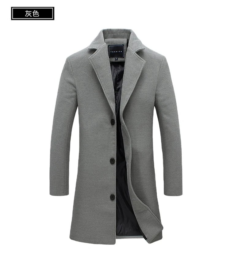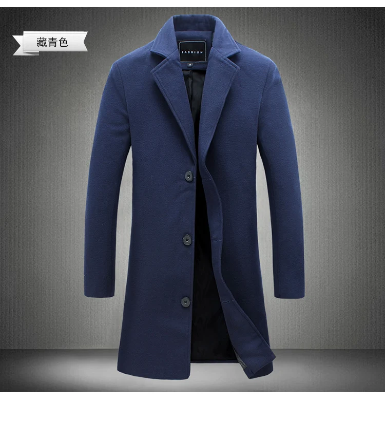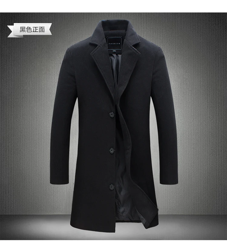 Мужской однотонный двубортный Тренч, повседневное тонкое длинное шерстяное пальто большого размера 5XL, зима 2019