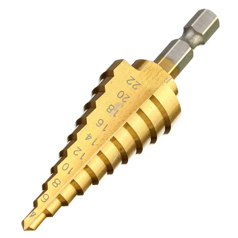 Титановое ступенчатое сверло из быстрорежущей стали, 4-22 мм, 1 шт.