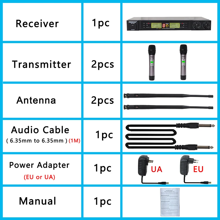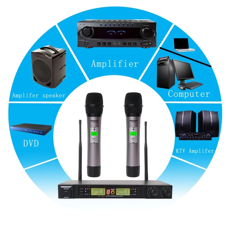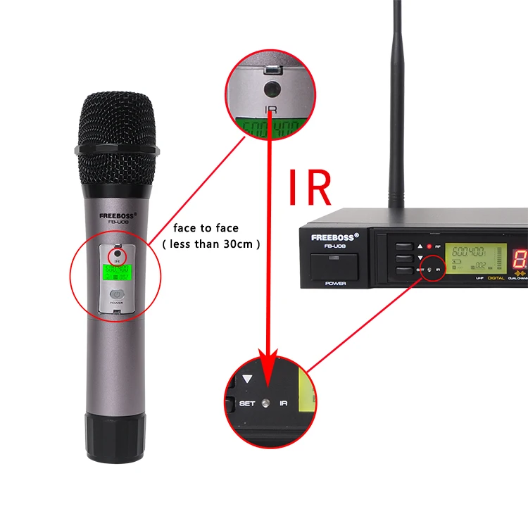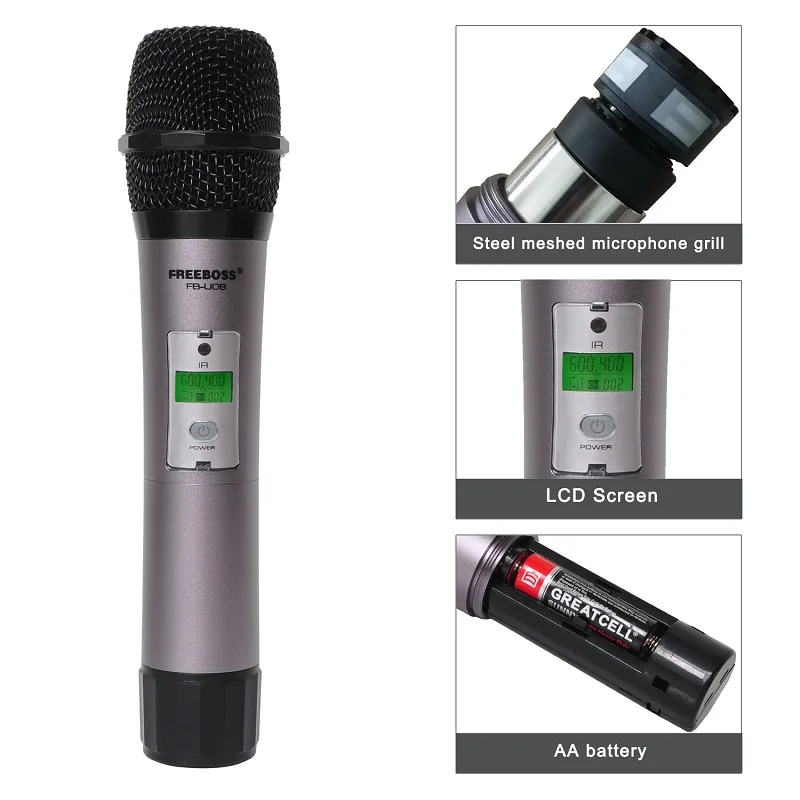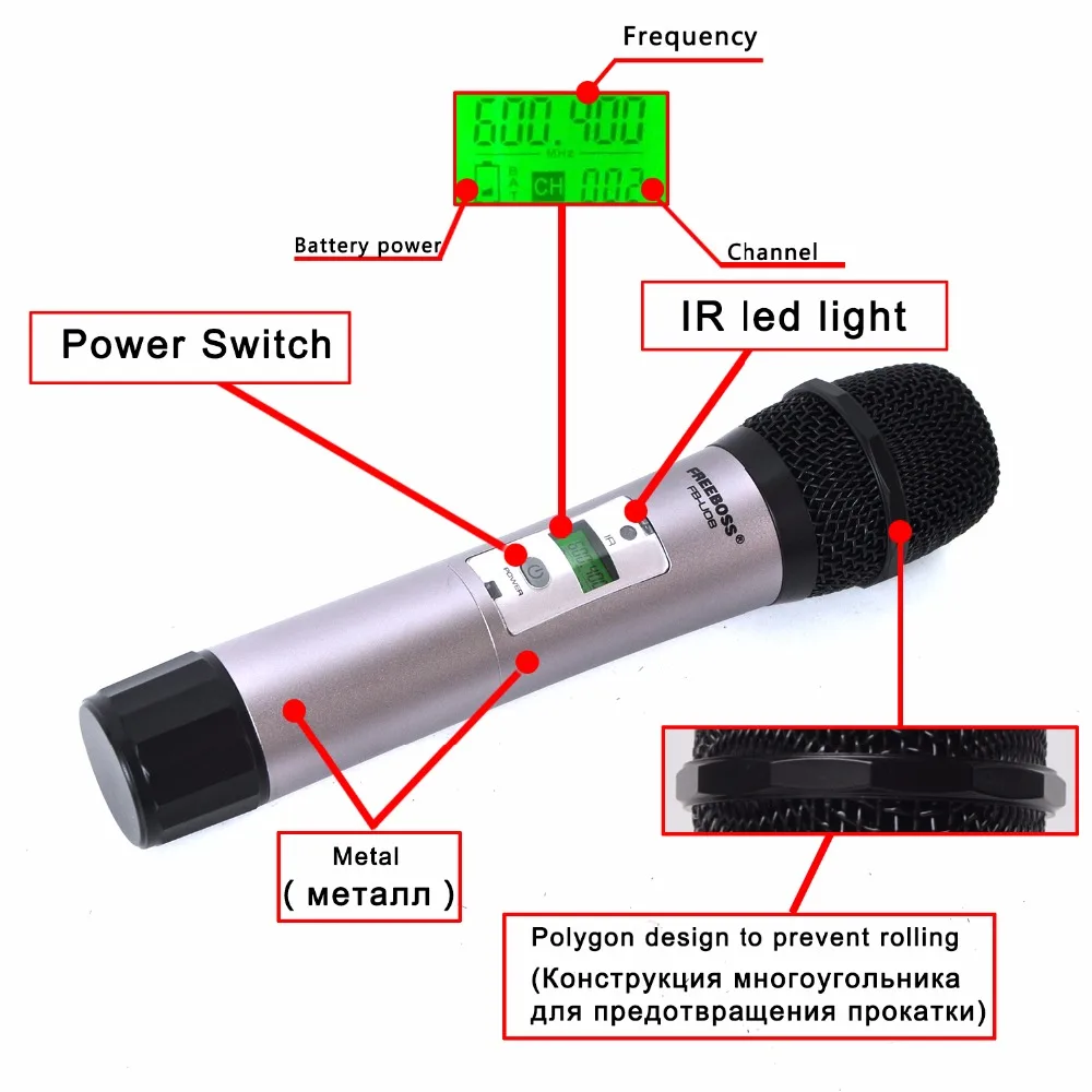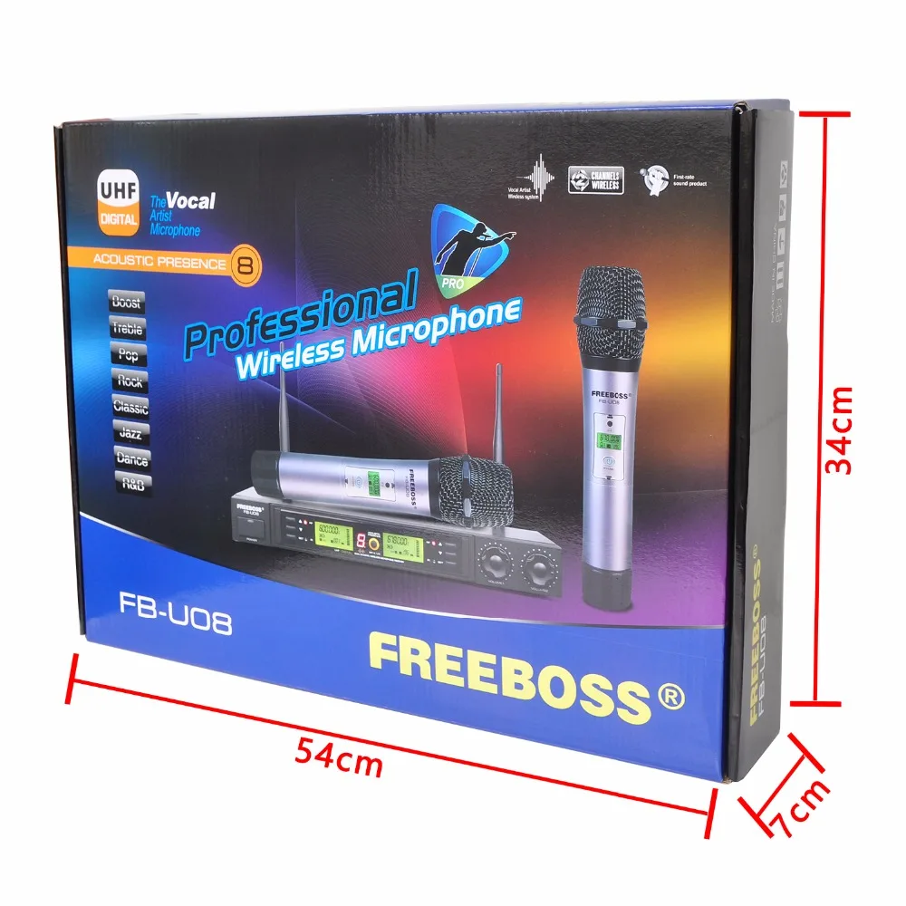 Freeboss 2 Way 200 каналов PLL IR Частотный UHF беспроводной микрофон с 2 металлическими ручками для Karoke KTV вечерние UHF Dynamice микрофон