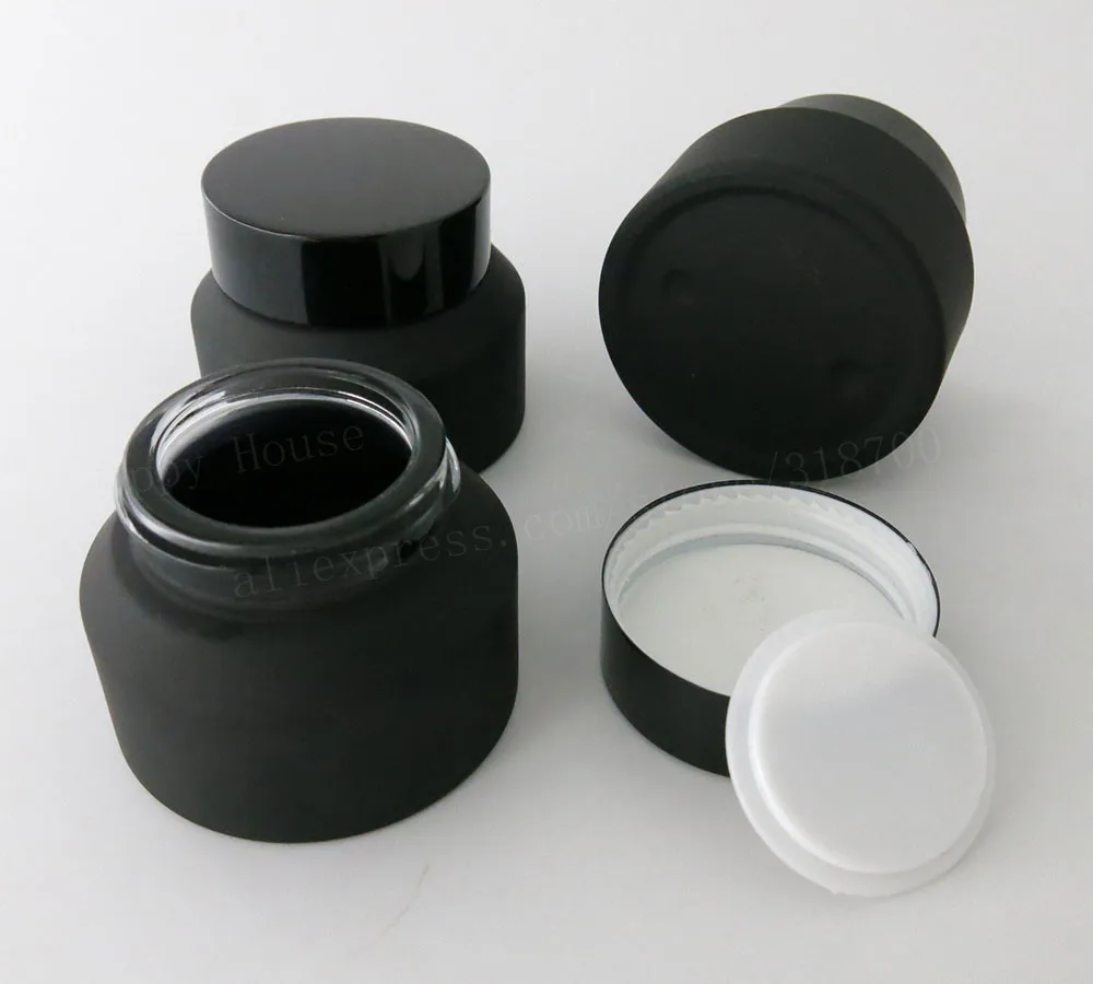 12x15 г, 30 г, 50 г, Мороз Черный Стекло баночка для крема с крышками белая печать вставки упаковочный контейнер для косметической продукции Стекло крем горшок