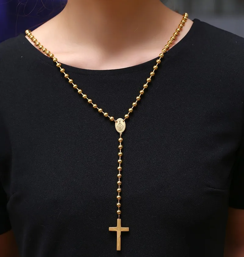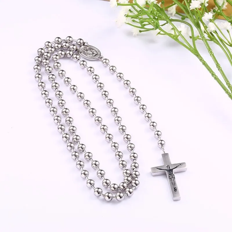 Rosunion Rosary длинное католическое ожерелье с распятиями из нержавеющей стали 6 мм молитвенные бусы Религиозные ювелирные изделия