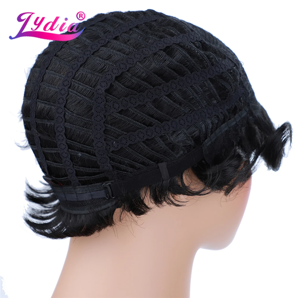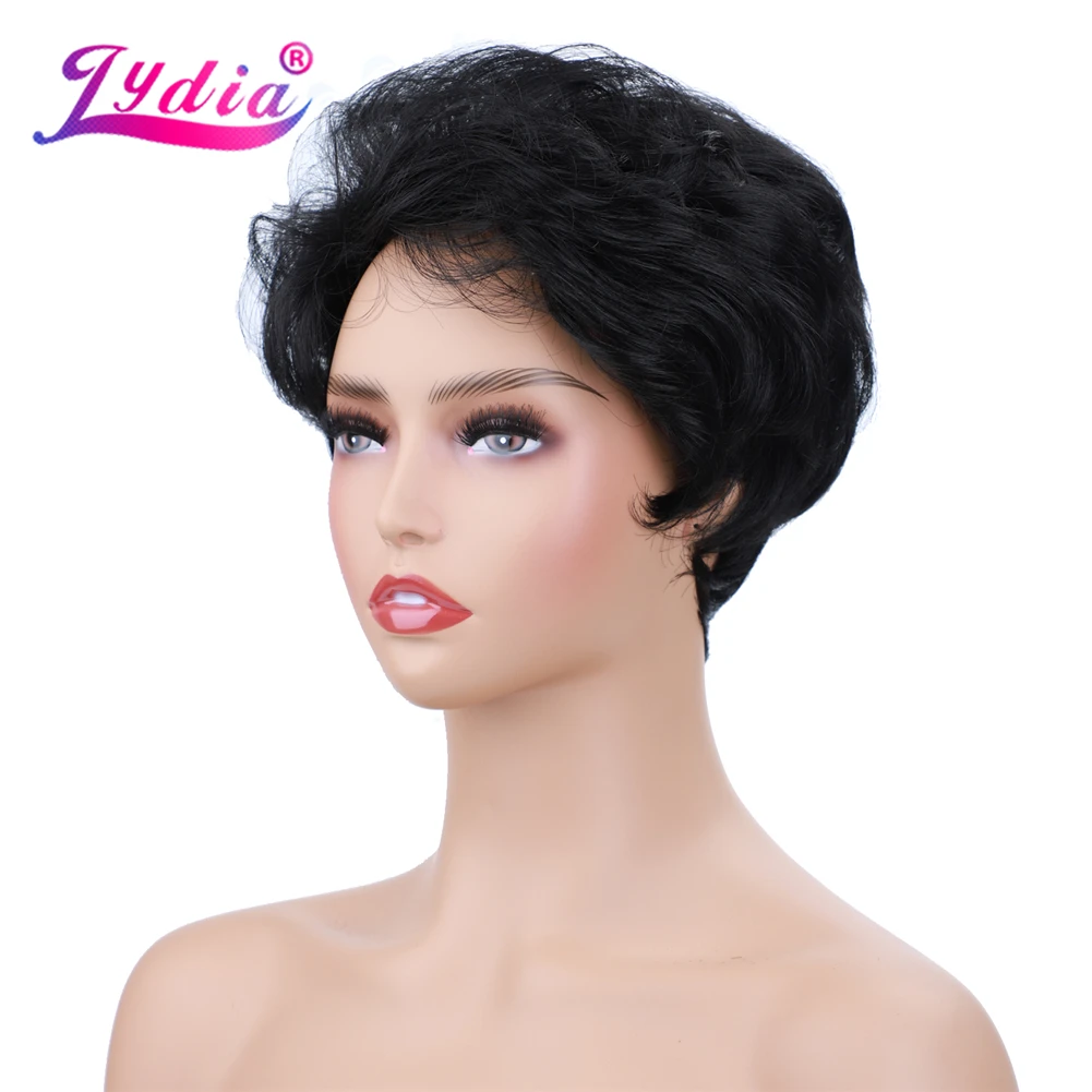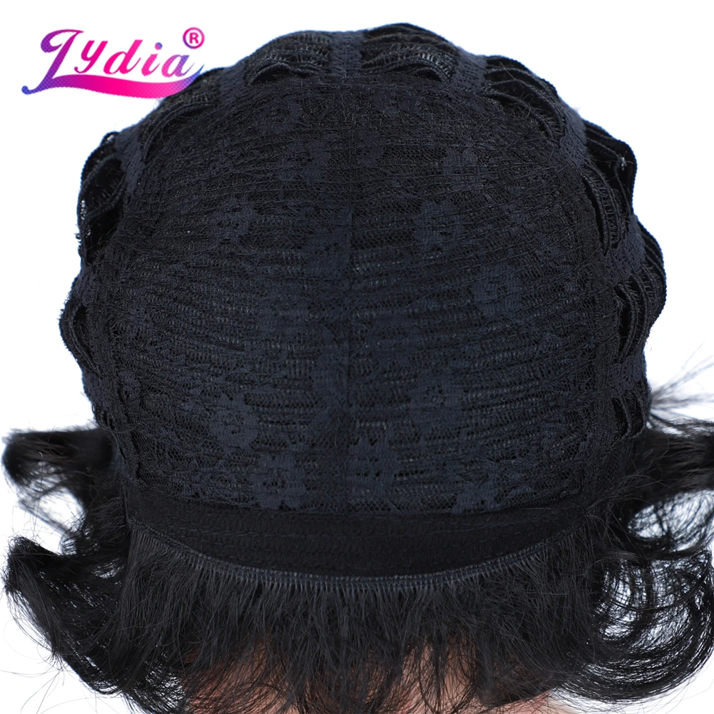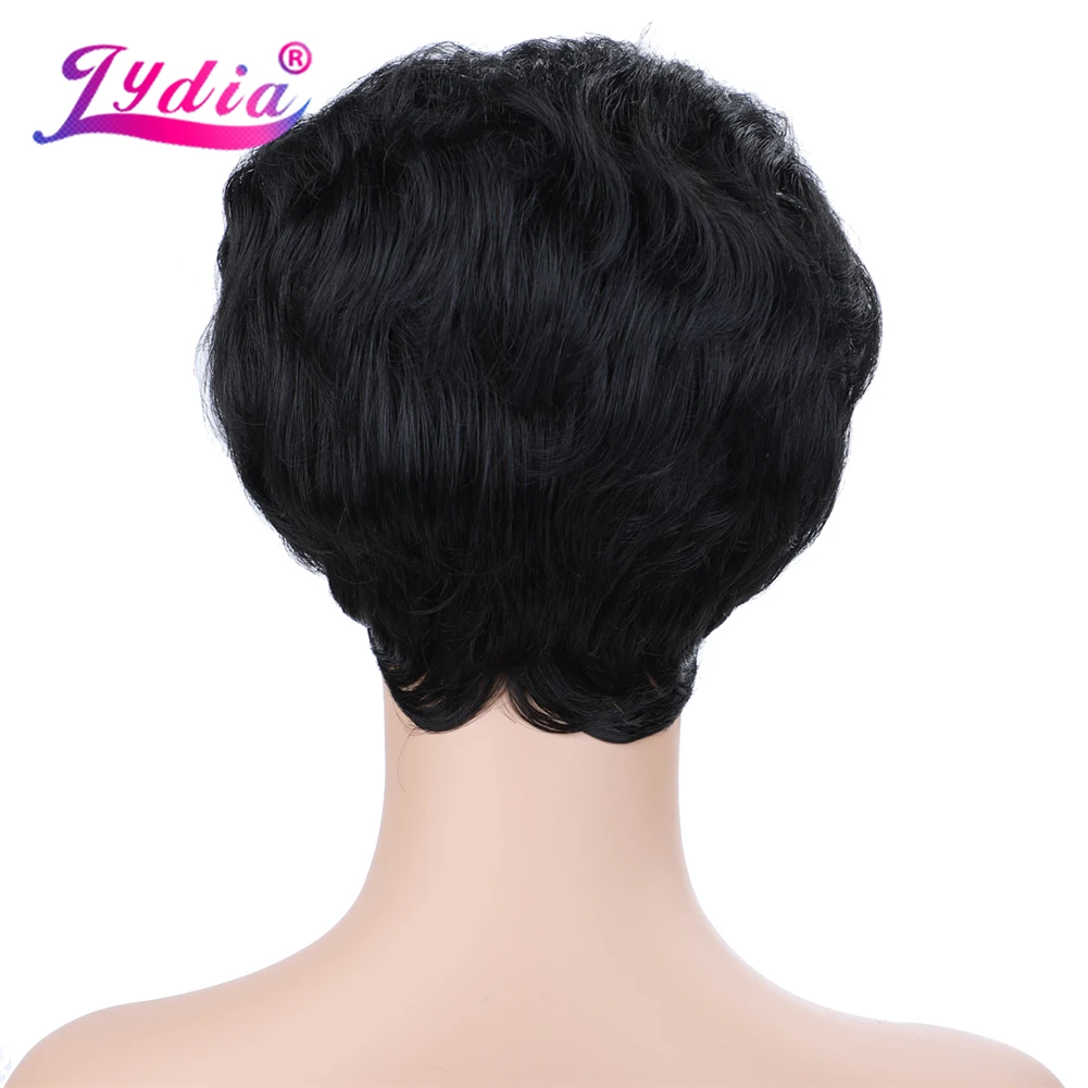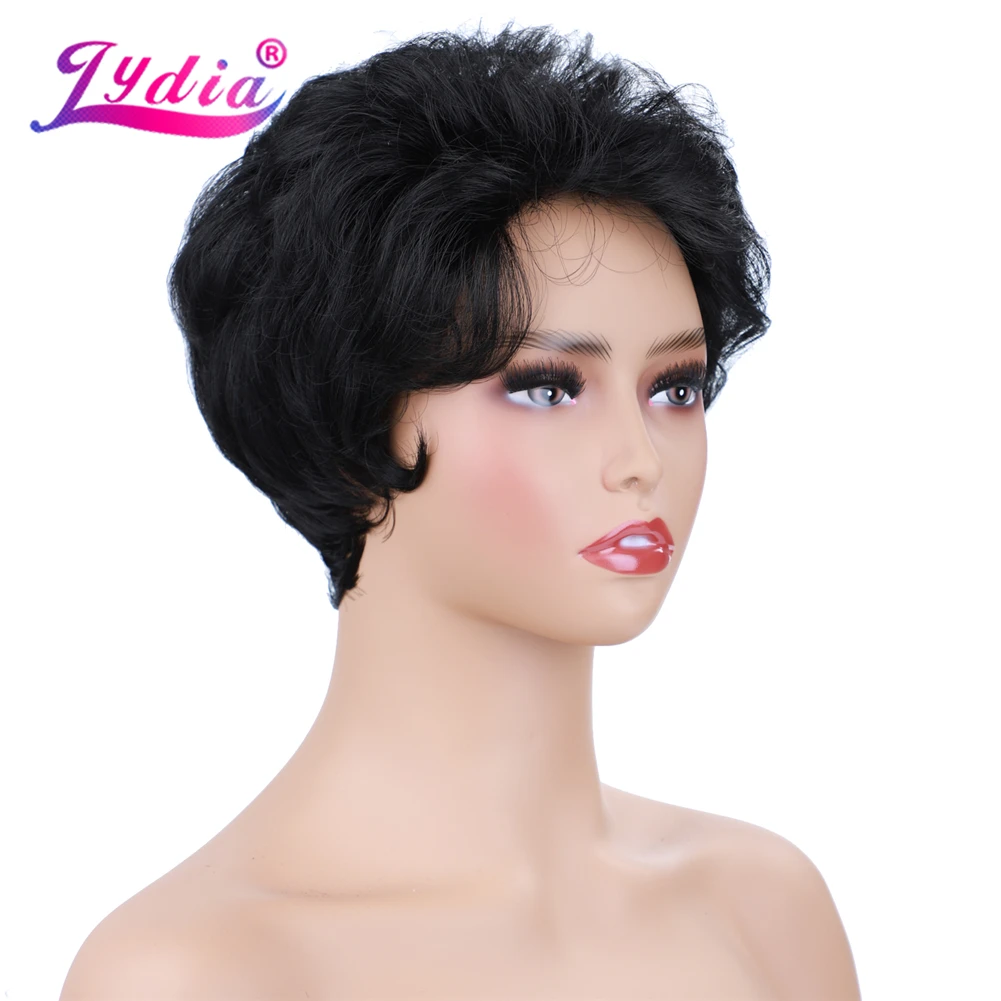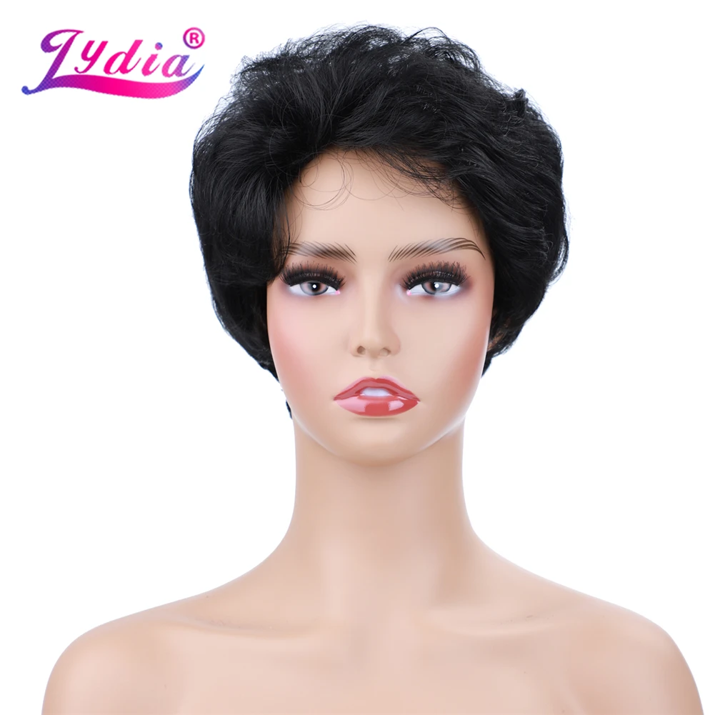 Лидия синтетические парики естественного цвета 1B Короткие вьющиеся парики 100% Канекалон высокотемпературный афроамериканский парики на каждый день для женщин