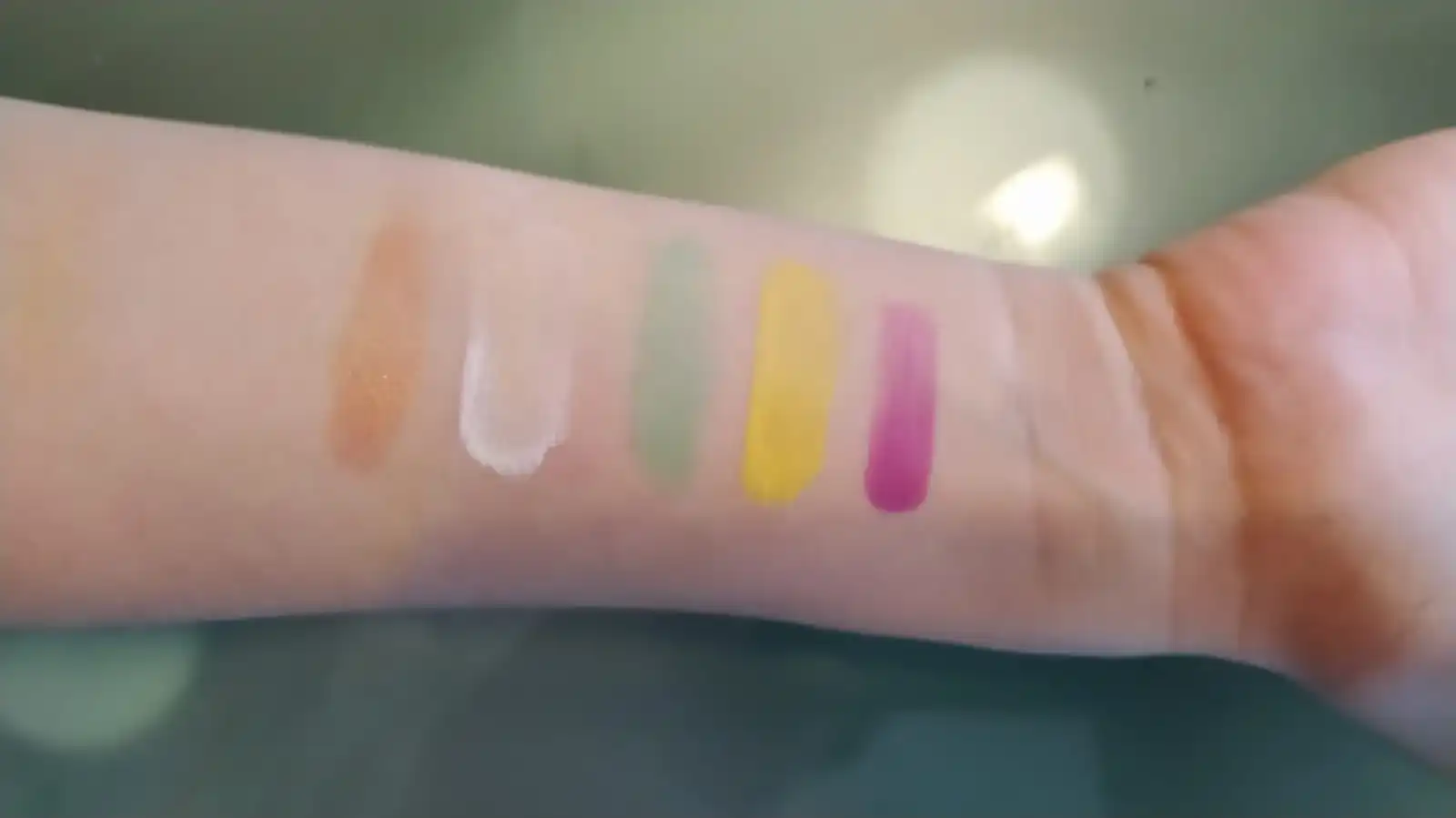 Текстура очень приятная на вид, способ нанесения и удаления. Цвета очень красивые в палитре, но при нанесении они не выглядят так красиво.