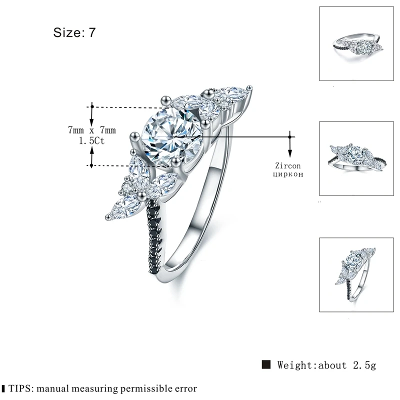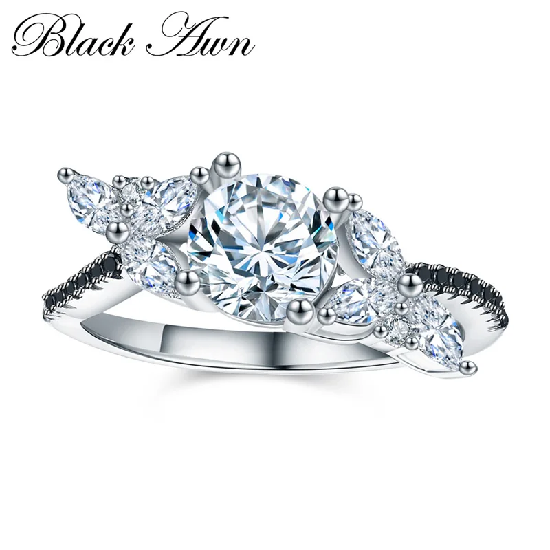 Женское Обручальное кольцо с черной шпинелью, серебристого цвета