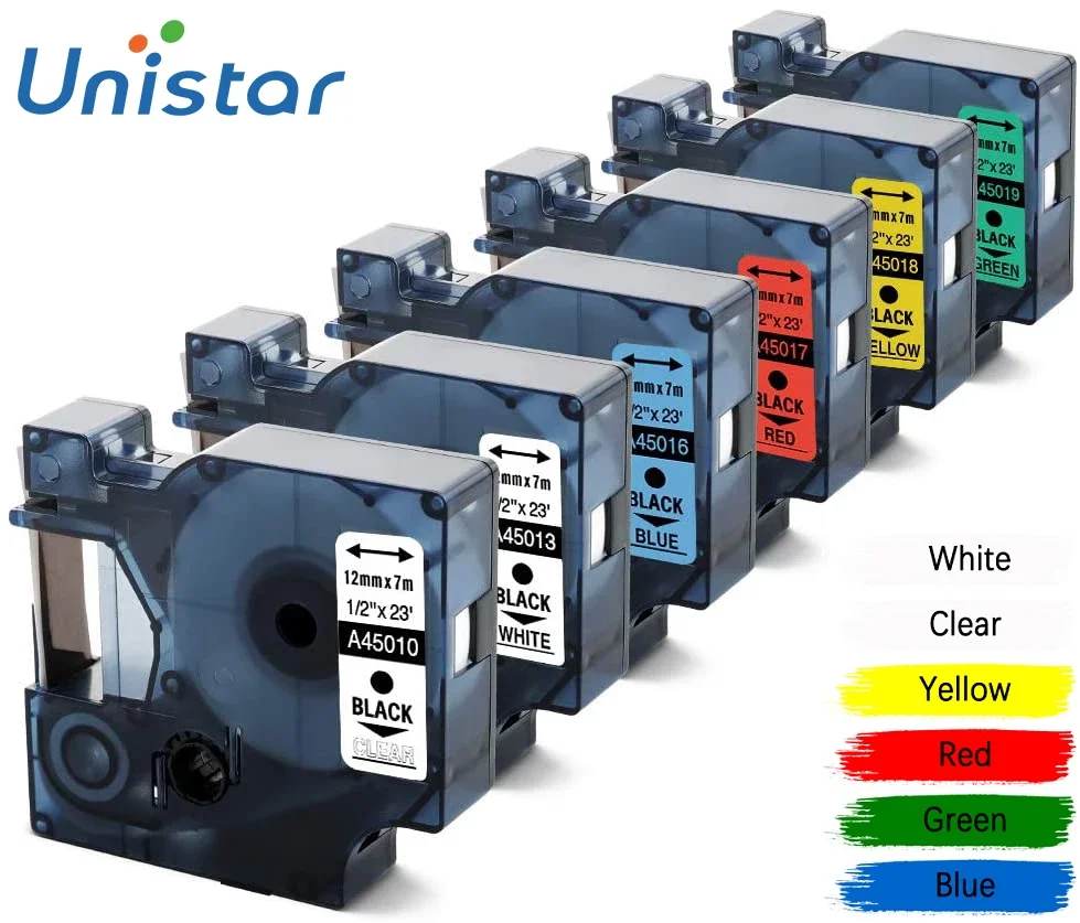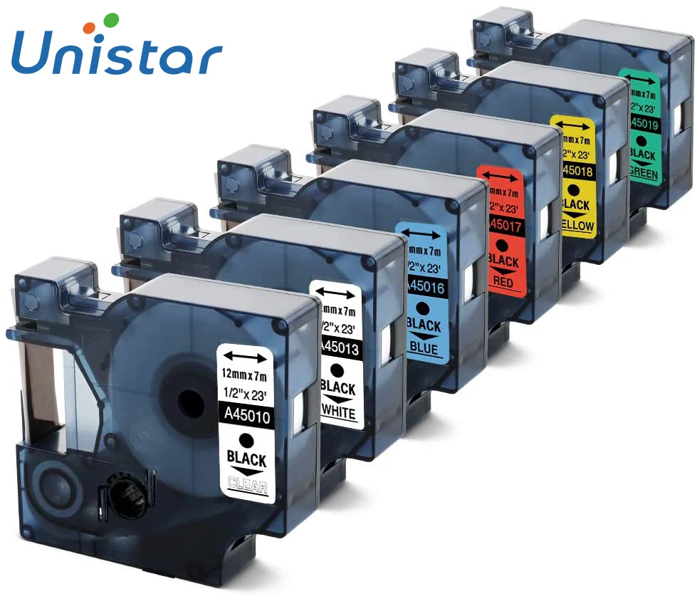 Unistar 6 шт. 12 мм 45013 совместим с Dymo и D1 45013 этикетки LabelManager 160 производитель этикеток 45010 45016 45017 45018