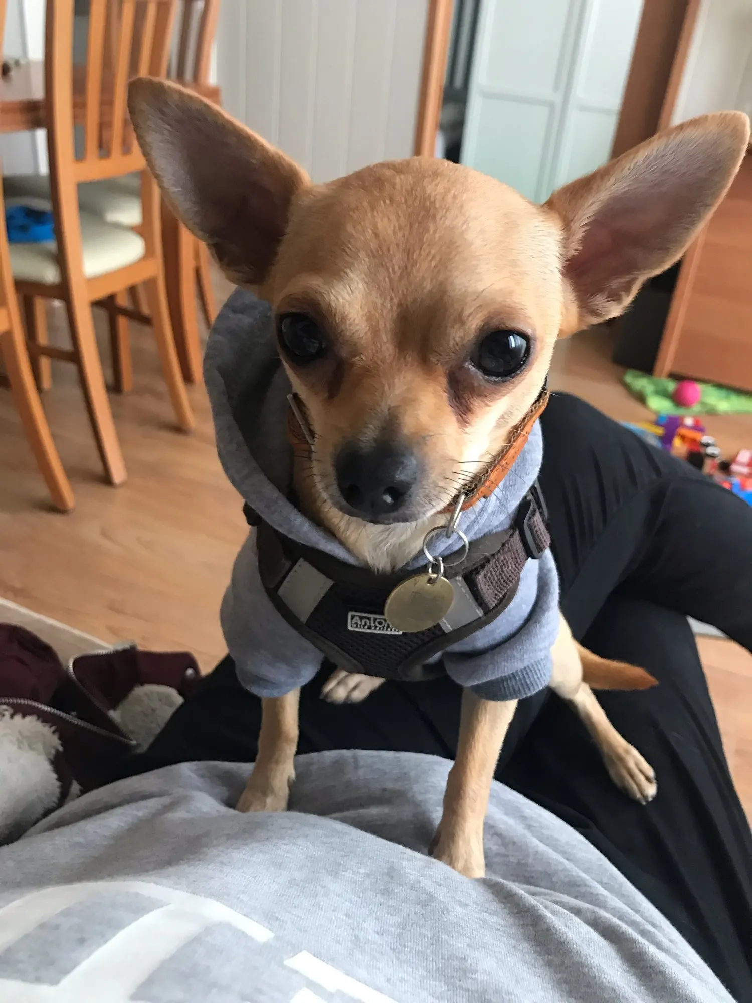 Идеально подходит для чихуахуа весом 2,8 кг, что-то короткое, но я думаю, что яркое.