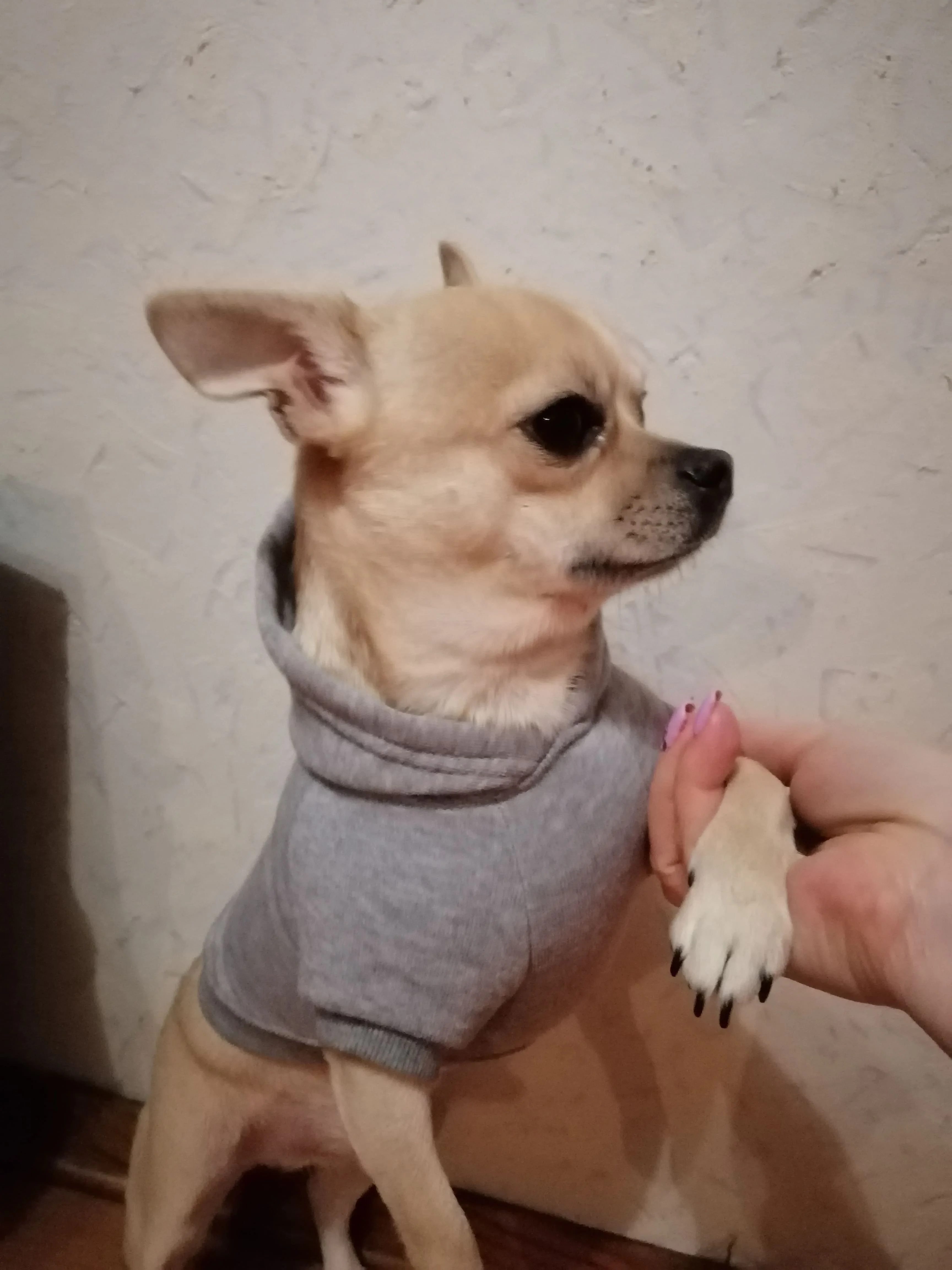 Замечательная толстовочка, нам очень все понравилось. Теплая (с начесом). По размеру -подошла отлично (продавец отзывчивый ) Пришла очень быстро. Однозначно рекомендую!!! Закажем обязательно еще нашему малышу - чихуа:)