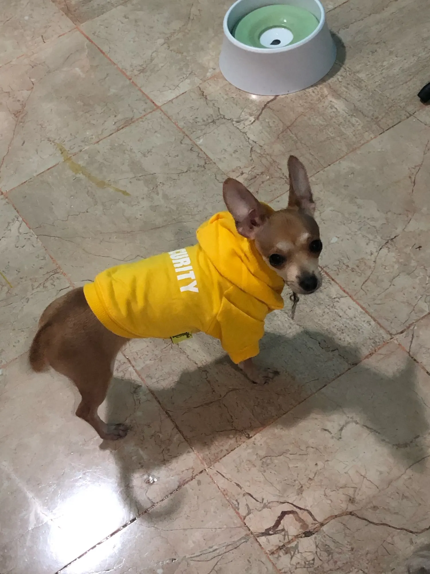 Толстовка хорошего качества. Очень теплый. Я заказал размер S для чихуахуа 1 '900кг, хотя рукава подходят для чего-то большого, и когда он идет, он получает утенок. Что не соответствует описанию, так это то, что он не вынимает Обручи из ремня.