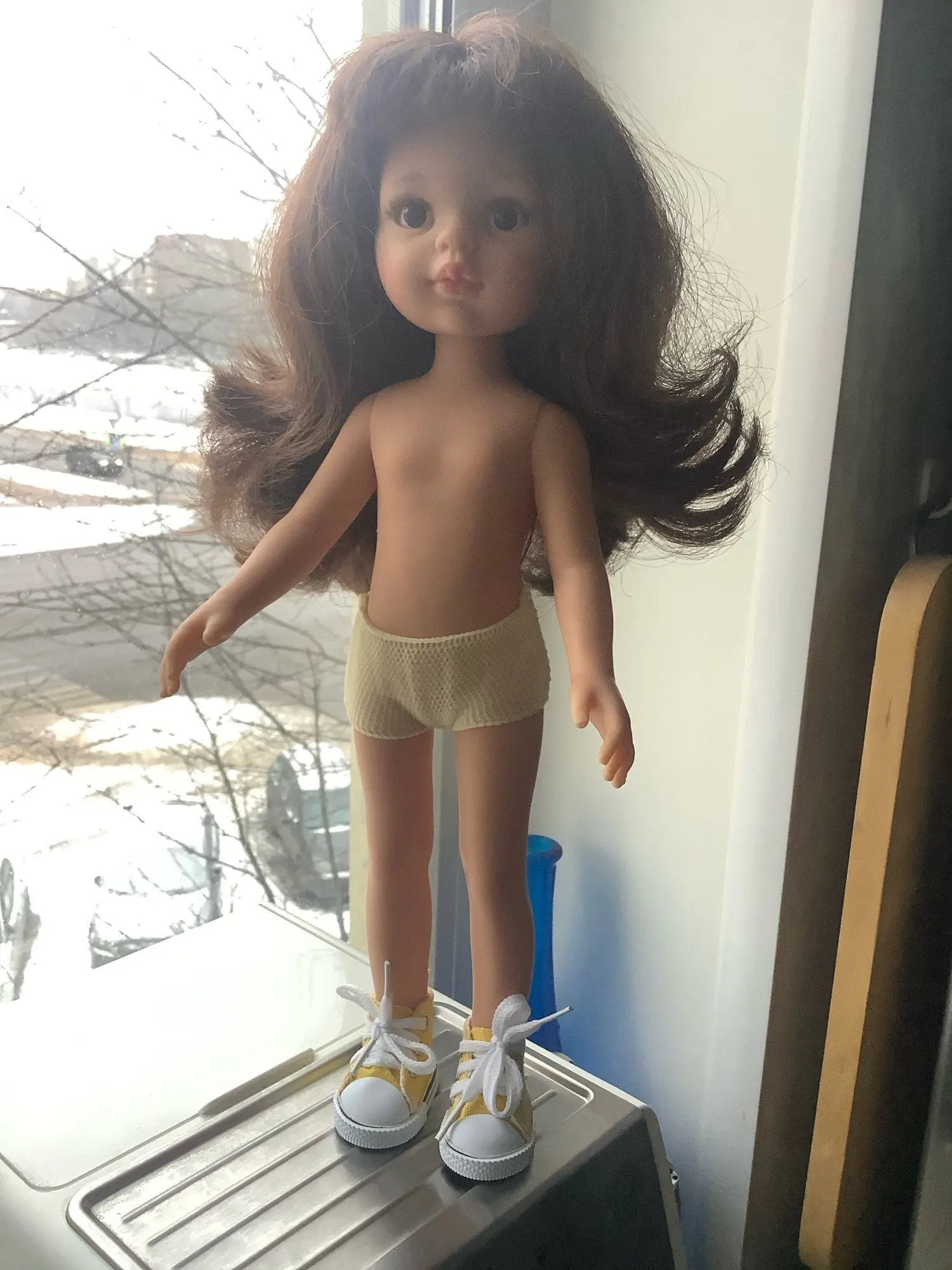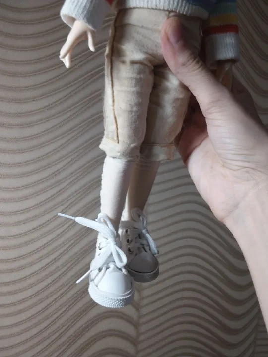 Долгая доставка(около 1,5 месяцев), но качество хорошее, размер подходит Iplehouse Lonnie со стопой 4,5 см. На кукле смотрятся немного больше, чем настоящие кеды смотрятся на ногах человека, но всё же кукле подходят. Кукла может стоять в них, но лучше использовать подставку или опору.