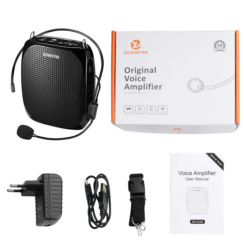 Портативный Перезаряжаемый мини-усилитель голоса Zoweetek, динамик с проводным микрофоном для учителей, поддерживает MP3 формат аудио Z258