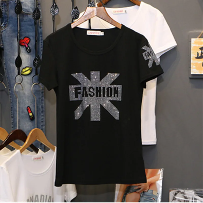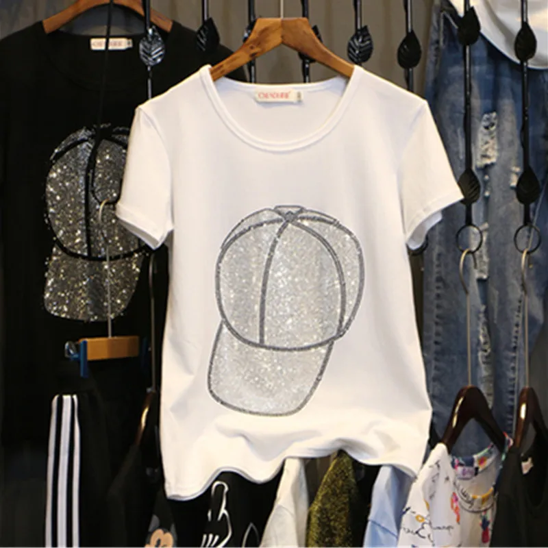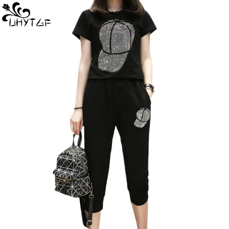 UHYTGF размера плюс комплект из двух предметов женский спортивный костюм женские летние топы 2021 Повседневная тонкая спортивная одежда шапка с бриллиантом топ и брюки 119
