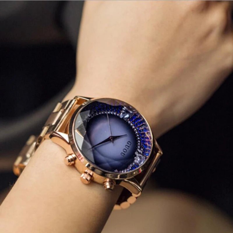 GUOU роскошные золотые часы женские часы модные бриллиантовые женские часы Лидирующий бренд женские часы reloj mujer zegarek damski