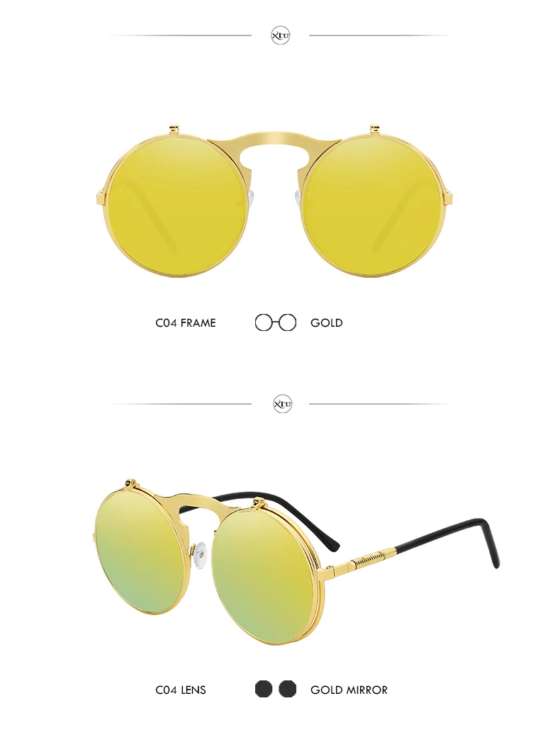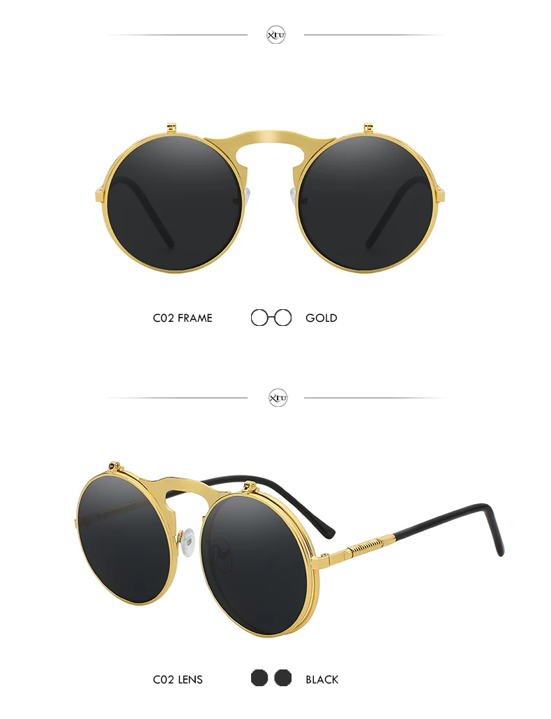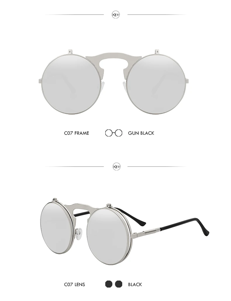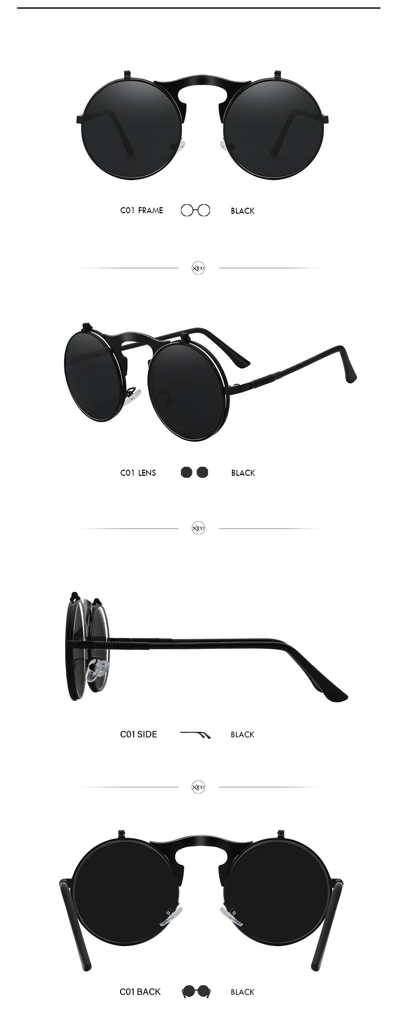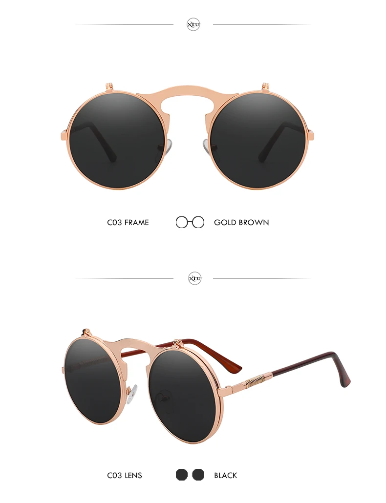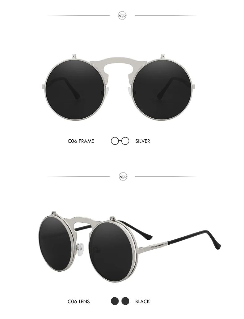 Солнцезащитные очки XIU с откидной крышкой в стиле стимпанк, мужские круглые Винтажные Солнцезащитные очки, брендовые дизайнерские модные очки UV400