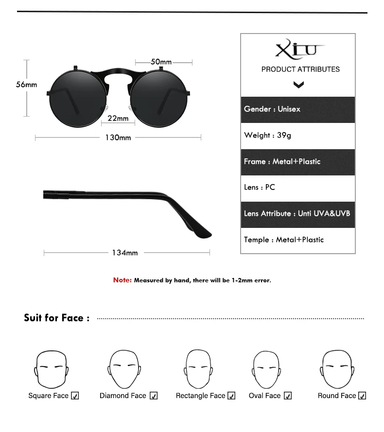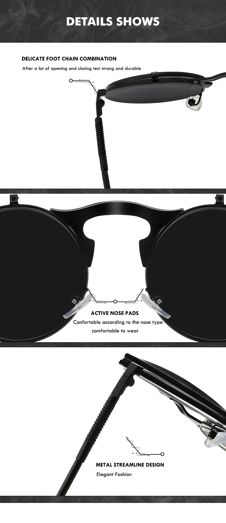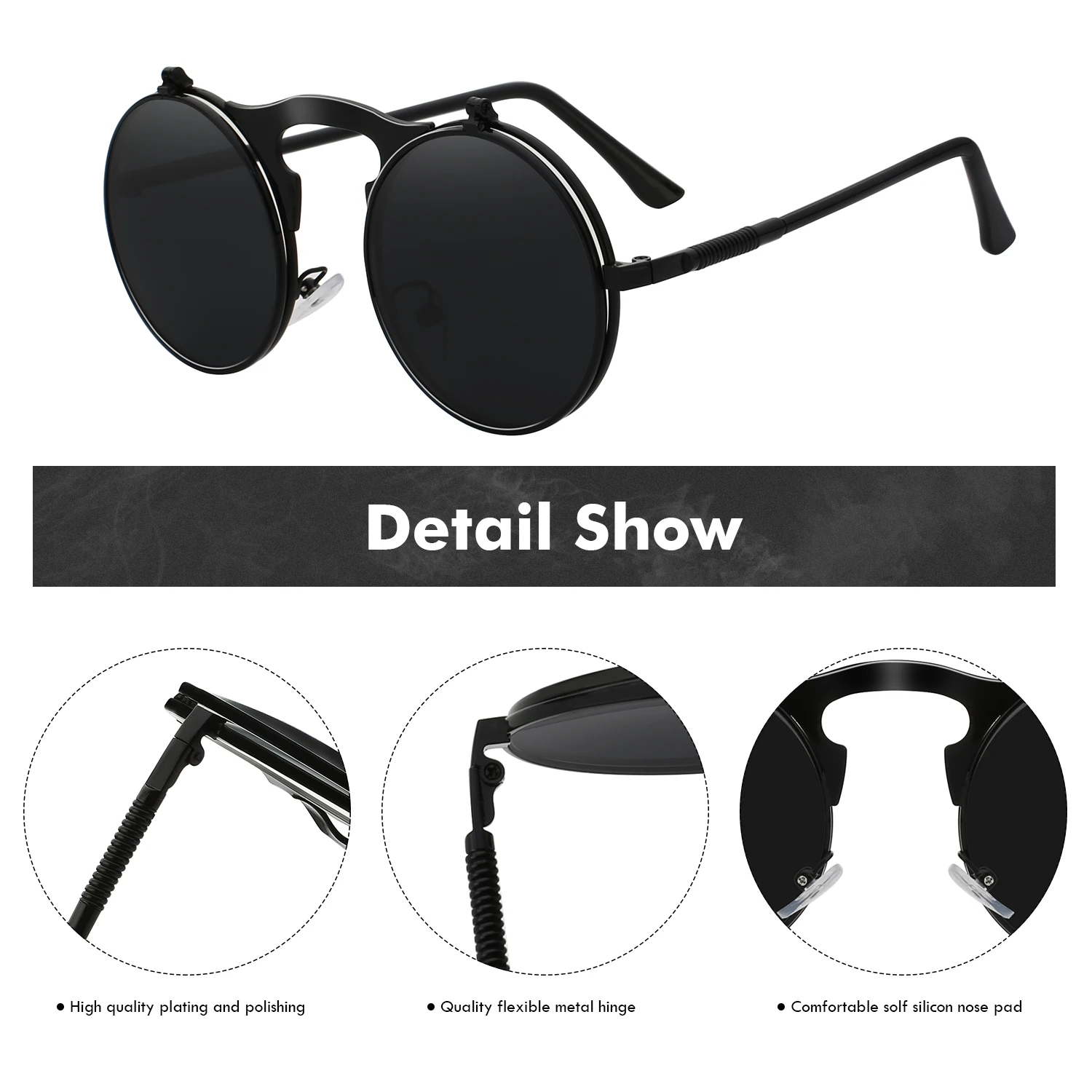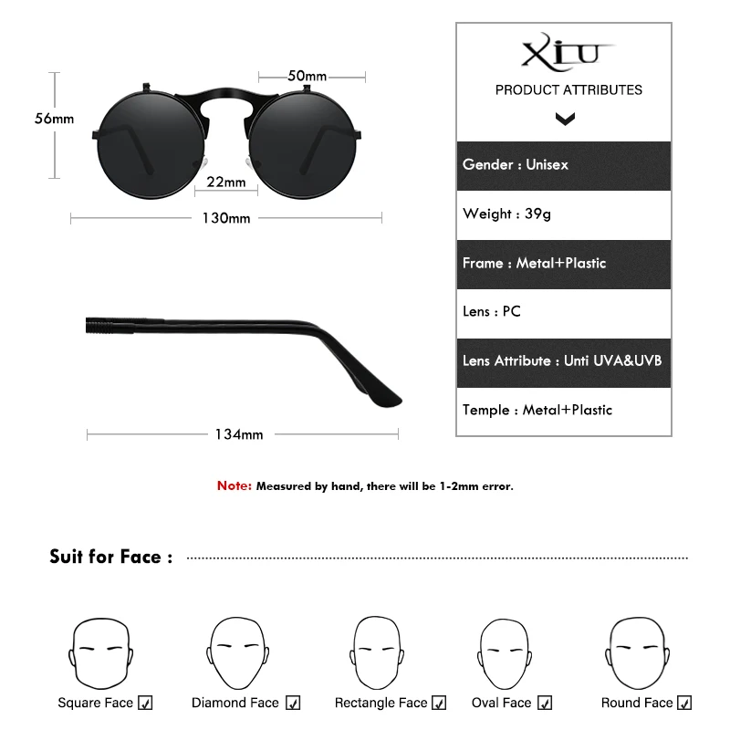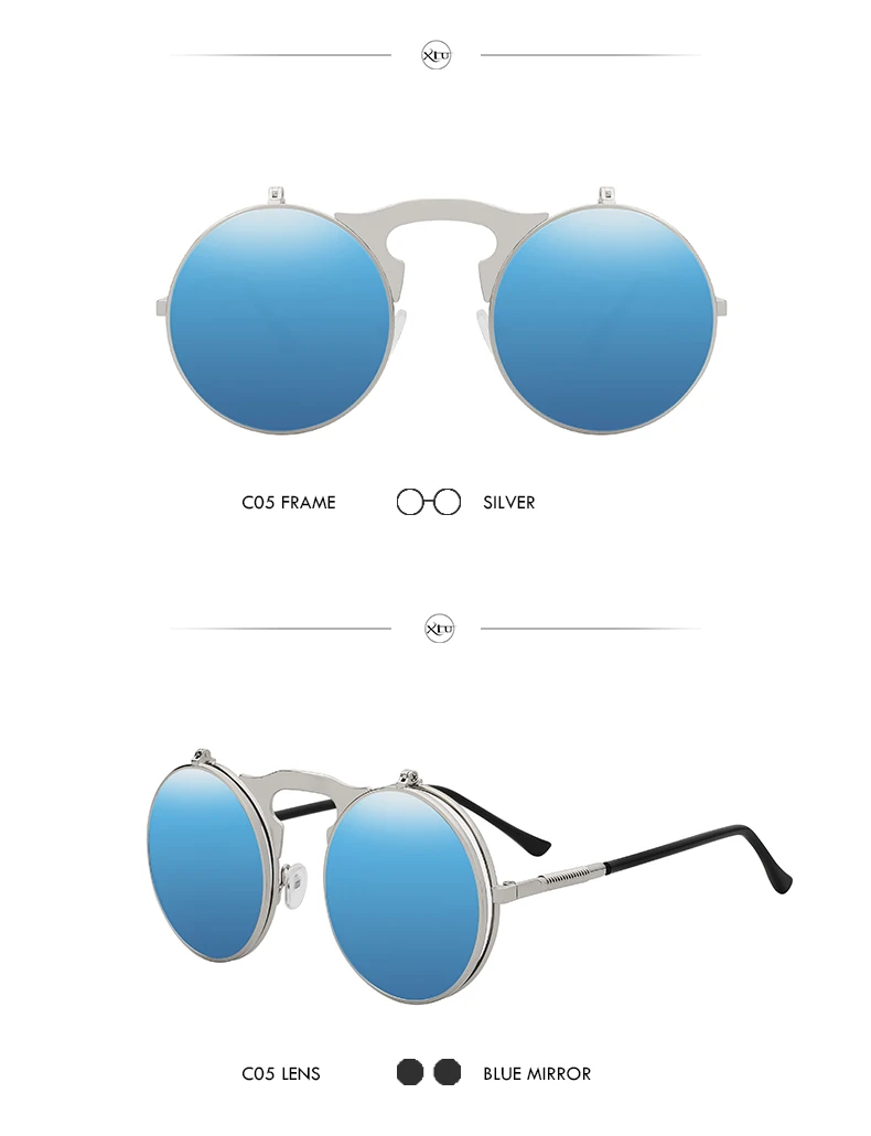 Солнцезащитные очки XIU с откидной крышкой в стиле стимпанк, мужские круглые Винтажные Солнцезащитные очки, брендовые дизайнерские модные очки UV400