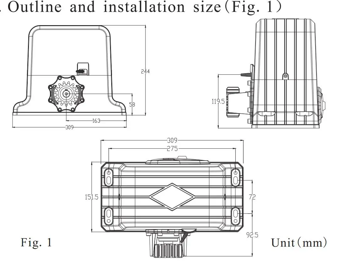 Для набора 1, 1 шт мотор раздвижных ворот +2 ключа дистанционного управления+ 1 Руководство пользователя + относительные винты