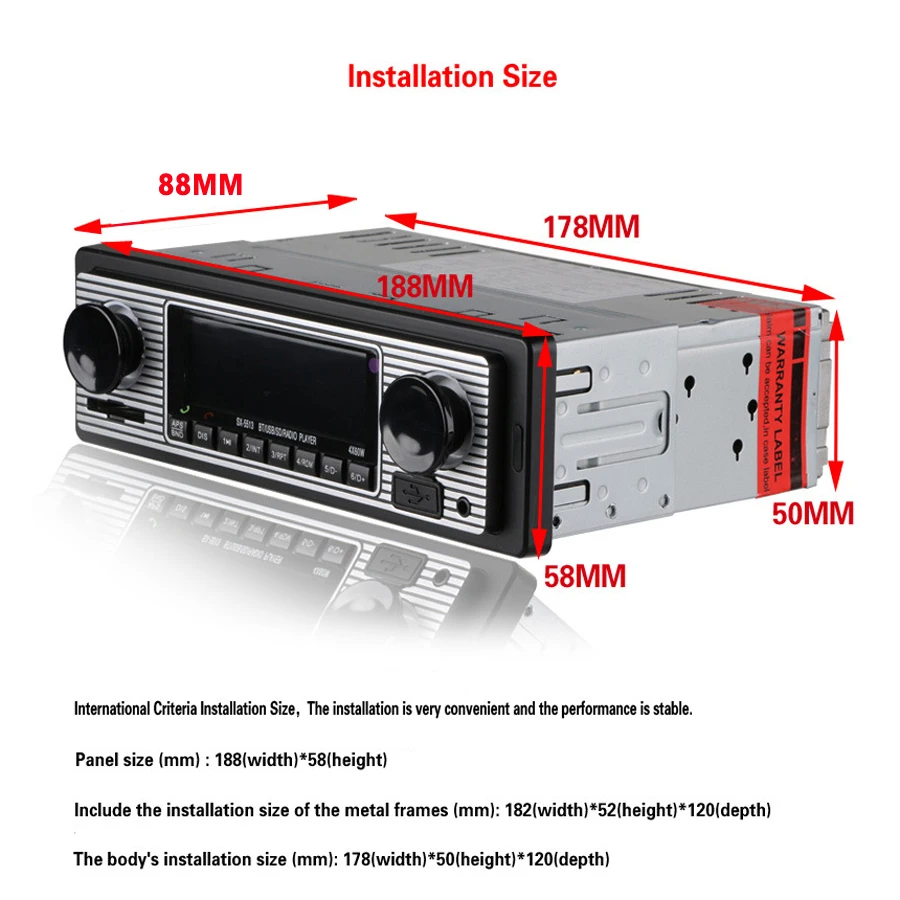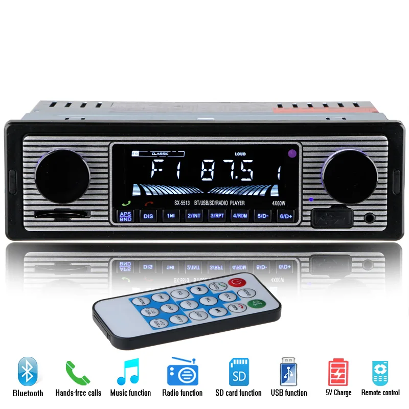 Автомагнитола, 12 В, 1 din, с Bluetooth, стерео плеером, MP3, FMUSB...