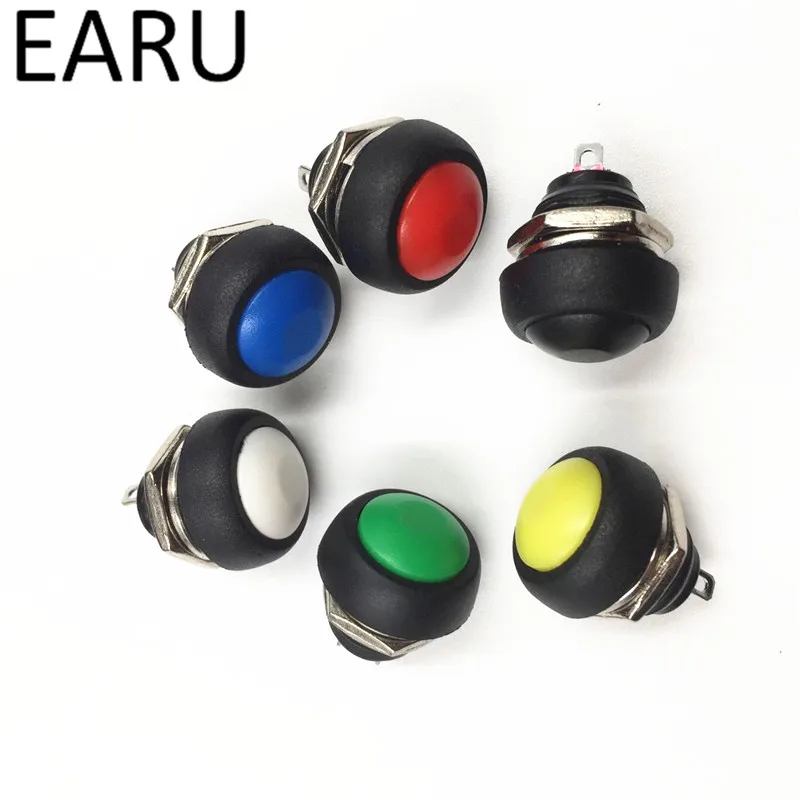 6 шт. маленький круглый кнопочный переключатель 12 мм, кнопочный переключатель, мгновенное выключение (вкл.), кнопочный переключатель, синий, белый, зеленый, красный, желтый
