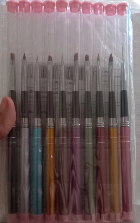 Отличный набор кистей. Все для меня нужные формы и размеры с очень красивым и практичным дизайном, складные, каждая имеет свой цвет корпуса, имеют плотный ворс. Корпус выполнен из металла и пластика. Очень удобно. Кисти пришли в тубусах в собранном виде. Посылка была быстро отправлена и доставка до Одессы заняла 17 дней.