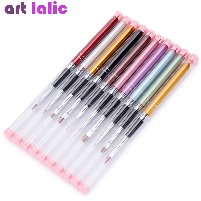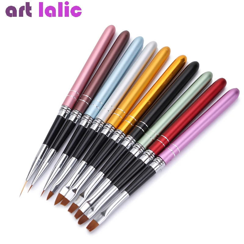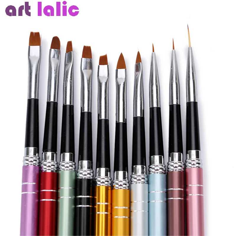 10 шт. Набор кистей для дизайна ногтей 10 различных размеров с медной ручкой для лака УФ-гель для рисования кисти для ногтей ручки
