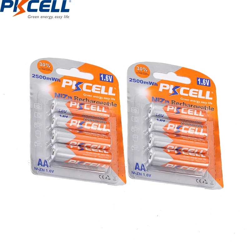 Аккумуляторы PKCELL, 1,6 в, NIZN, AA, 1,6 в, 2500 МВтч, 8 шт.2 упаковки