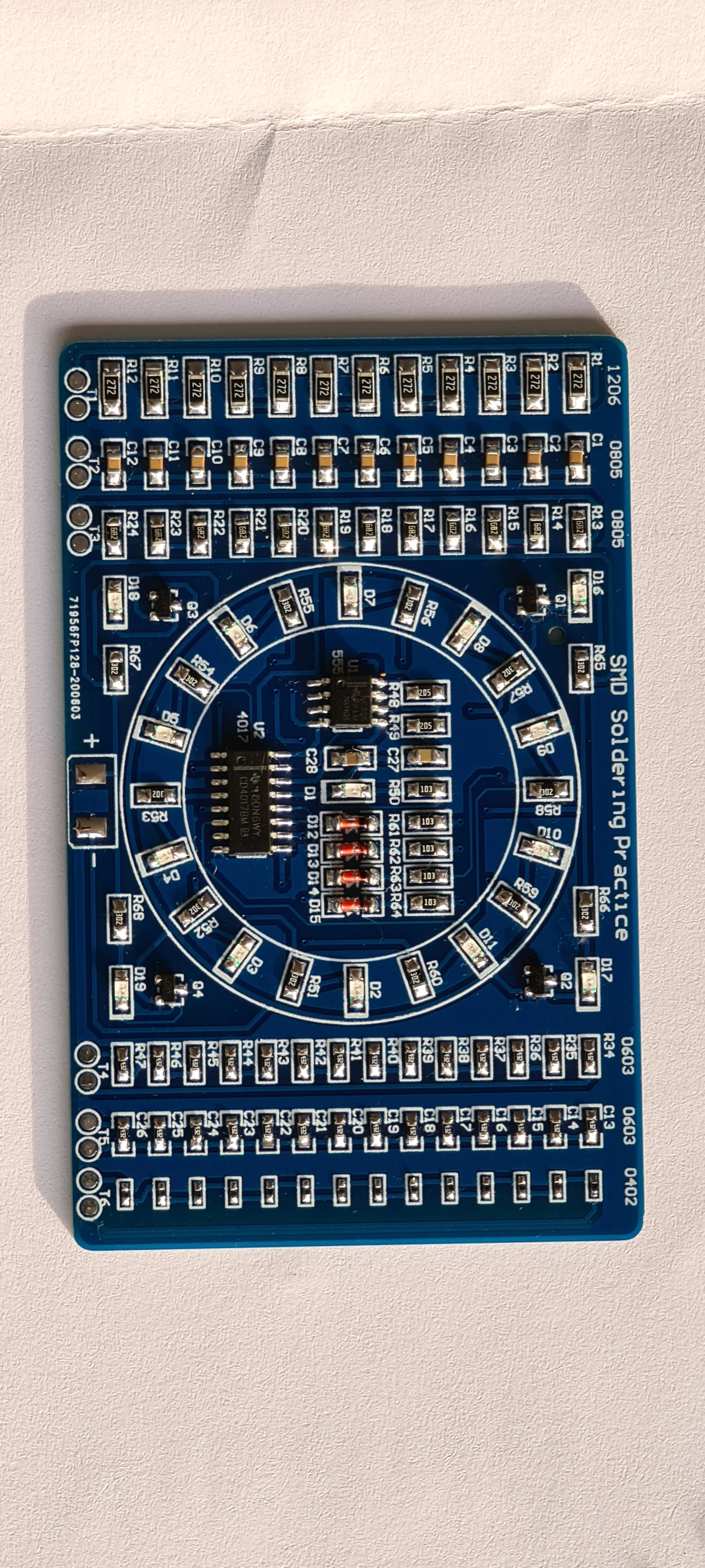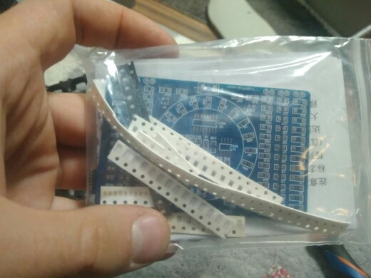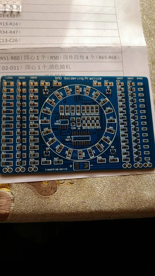 Доставка достаточно долгая, но всё-таки дошла. Хороший комплект для тренировки пайки smd компонентов. Все элементы на плате не задействованы, только в центре. Это тренировочная плата и простенькая мигалка на двух микросхемах. Сама плата очень качественная. Продавца рекомендую.