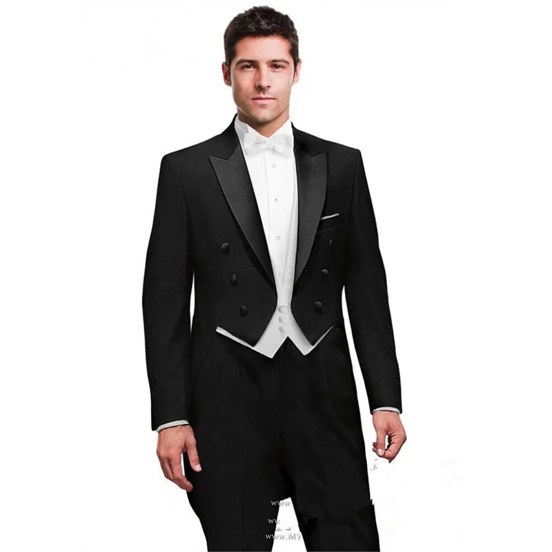 Новинка, модные черные мужские свадебные костюмы, мужские костюмы из 3 предметов, облегающие (пиджак + брюки + жилет), смокинги для жениха, костюм для шафера, деловые костюмы