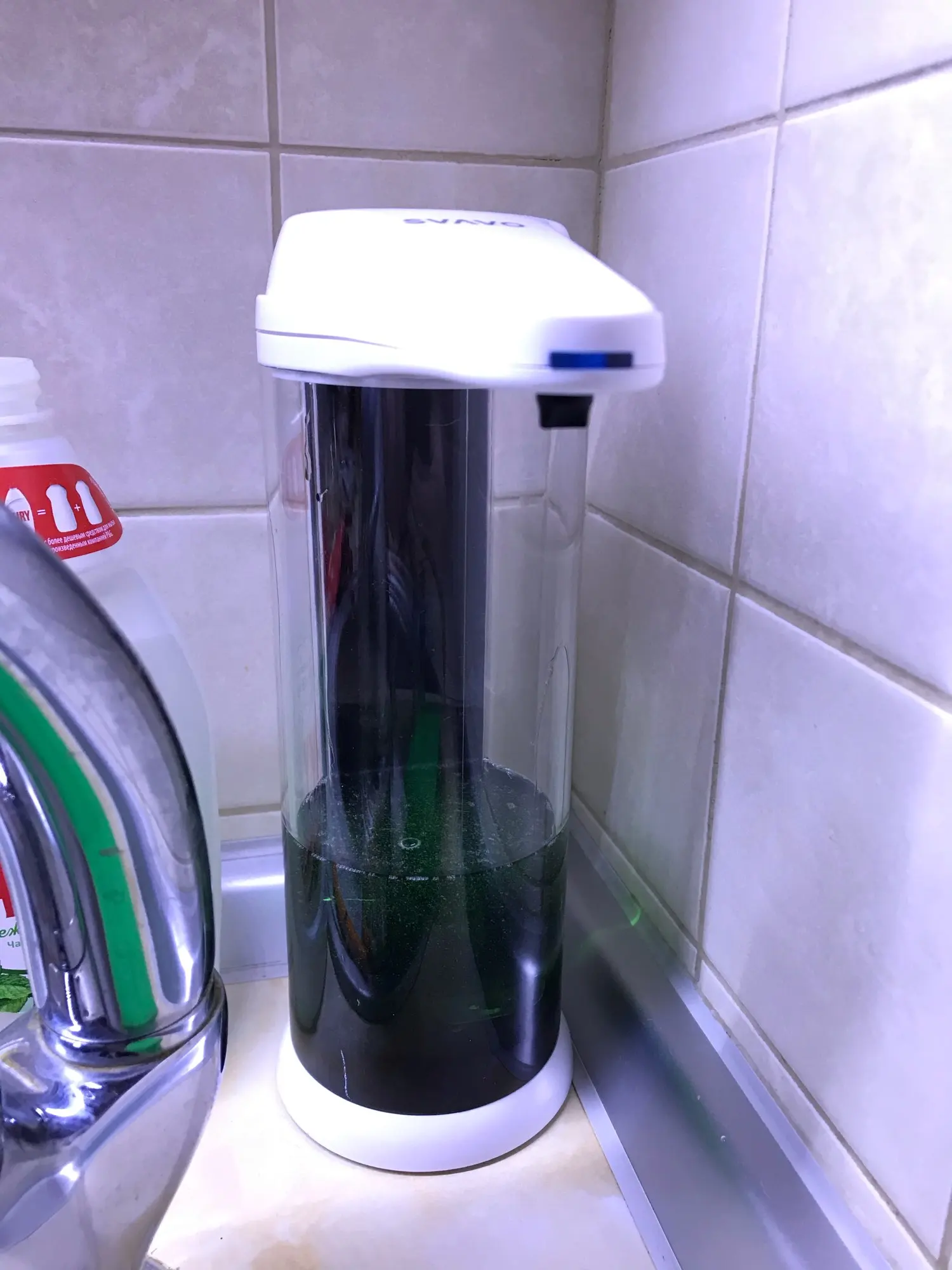 Посылка упакована просто замечательно, все дошло в целости и сохранности. Товар полностью соответствует описанию. Перед этим брал дозатор SVAVO 340 мл, он отработал 9 месяцев и перестал выполнять свою функцию. Купил эту модель SVAVO 550 мл, включил, все работает. По функциональности эта модель более удобная: 1. Вместо 330 мл - 500 мл. 2.Сама емкость полностью прозрачная. Очень удобно видеть сколько осталось мыла. 3. В данной модели переключение количества мыла выполняется колесиком, в предыдущей нажатием кнопки, что не очень удобно, т.к. что бы добраться до этой кнопки, нужно было снять защитную крышку, которая очень плотно задвигается. Что с намылинными руками делать было очень не удобно. 4.В данной модели носик из которого подается мыло чуть длиннее и удобнее, что позволяет более удобно расположить данный дозатор к раковине. В общем я очень доволен покупкой и советую, как сам продукт, так и продавца, который всегда на связи!