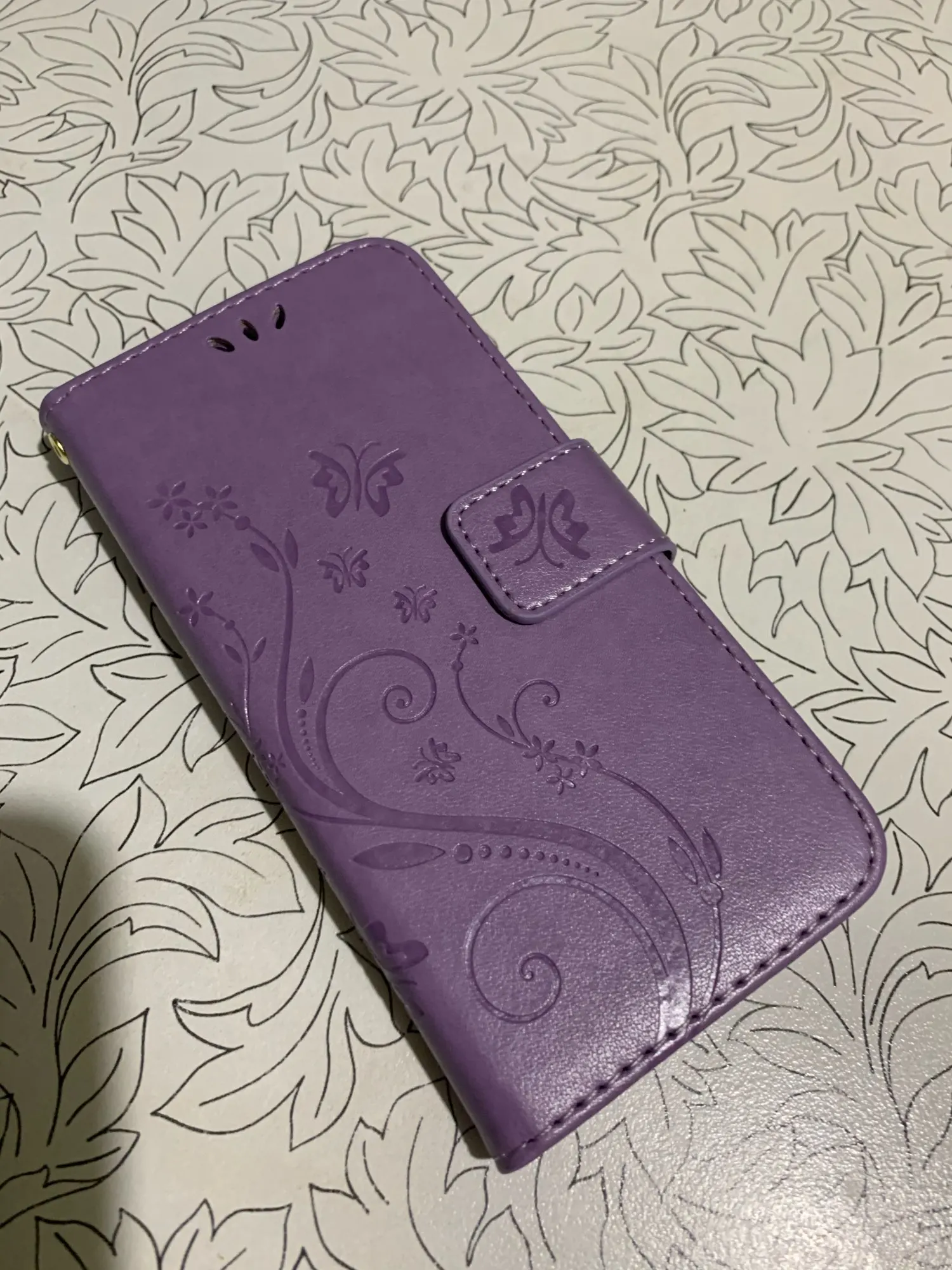 Добрый день! Спасибо за поставку. Чехол приятный во всех отношениях :) по цене, качеству, расцветке, на ощупь, изысканный узор. Голубой довольно насыщенный, не светлый, будет меньше пачкаться. В комплекте веревочка-петелька на руку вешать чехол. Магнит хорошо закрывается. Правда , когда устанавливаешь телефон для просмотра видео, то он мешает. Понравилось, что можно набрать номер, звонить, закрыть челол и разговаривать по телефону, таким образом не болтается вторая половина чехла в воздухе. Доставка стандартная, но привезли немного раньше срока. Спасибо. Рекомендую.